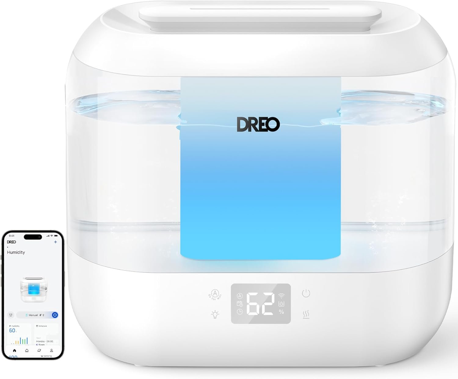 Larger mist, faster relief: Powered by Dreo’s Dual-intake design, this humidifier creates a supersized mist 3 times larger than most air humidifiers, bringing faster dry air relief and helping you breathe easy and healthy