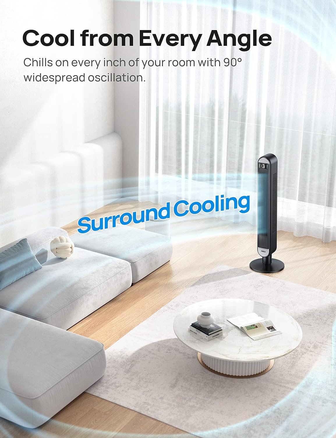 Hands-Free Control: Alexa and Google Assistant make it easier and faster to control your Tower Fan from anywhere. Even when you can’t find the remote control, access your Dreo oscillating fan easily with the Dreo App