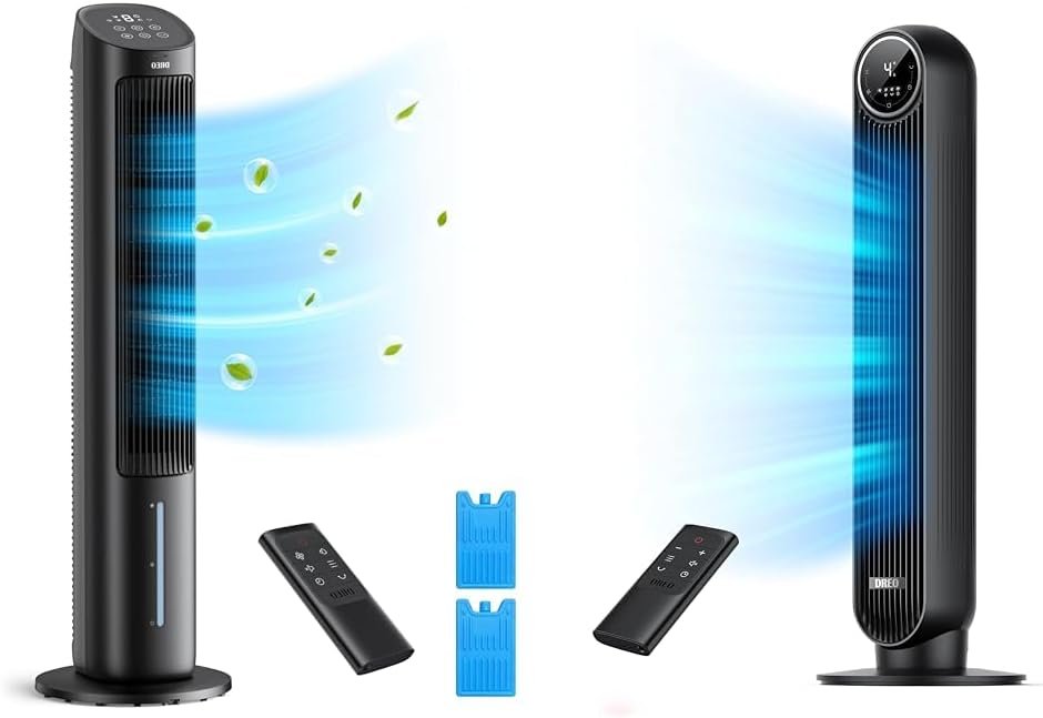 Beat the heat this summer with this tower fan bundle from Dreo. The first component is a 40-inch evaporative air cooler that delivers quiet, cold air to keep you comfortable. It features a crossflow impeller wheel that smooths out fan noise, 80° wide-angle oscillation to cover your whole room, and a removable water tank for easy cleaning. With airflow up to 21.65 ft/s, this personal swamp cooler can cool rooms up to 13,000 cubic feet. Complementing the evaporative cooler is Dreo’s 25 ft/s velocity tower fan. Its compact 36-inch design packs powerful performance thanks to an all-in-one airflow system and supercharged motor. Despite the strong airflow, an algorithmic impeller minimizes noise for serene comfort. This slim fan oscillates 90° to reach every corner and its customizable comfort settings let you dial in the perfect breeze. With cold air power from the evaporative cooler and concentrated comfort from the tower fan, this bundle keeps you feeling refreshed all summer long. The duo combines to cover large spaces with quiet, customizable airflow perfect for bedroom and living room. Stay comfortable this season with Dreo’s innovative cooling bundle.