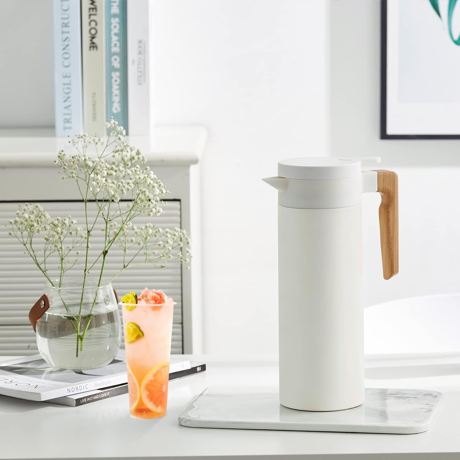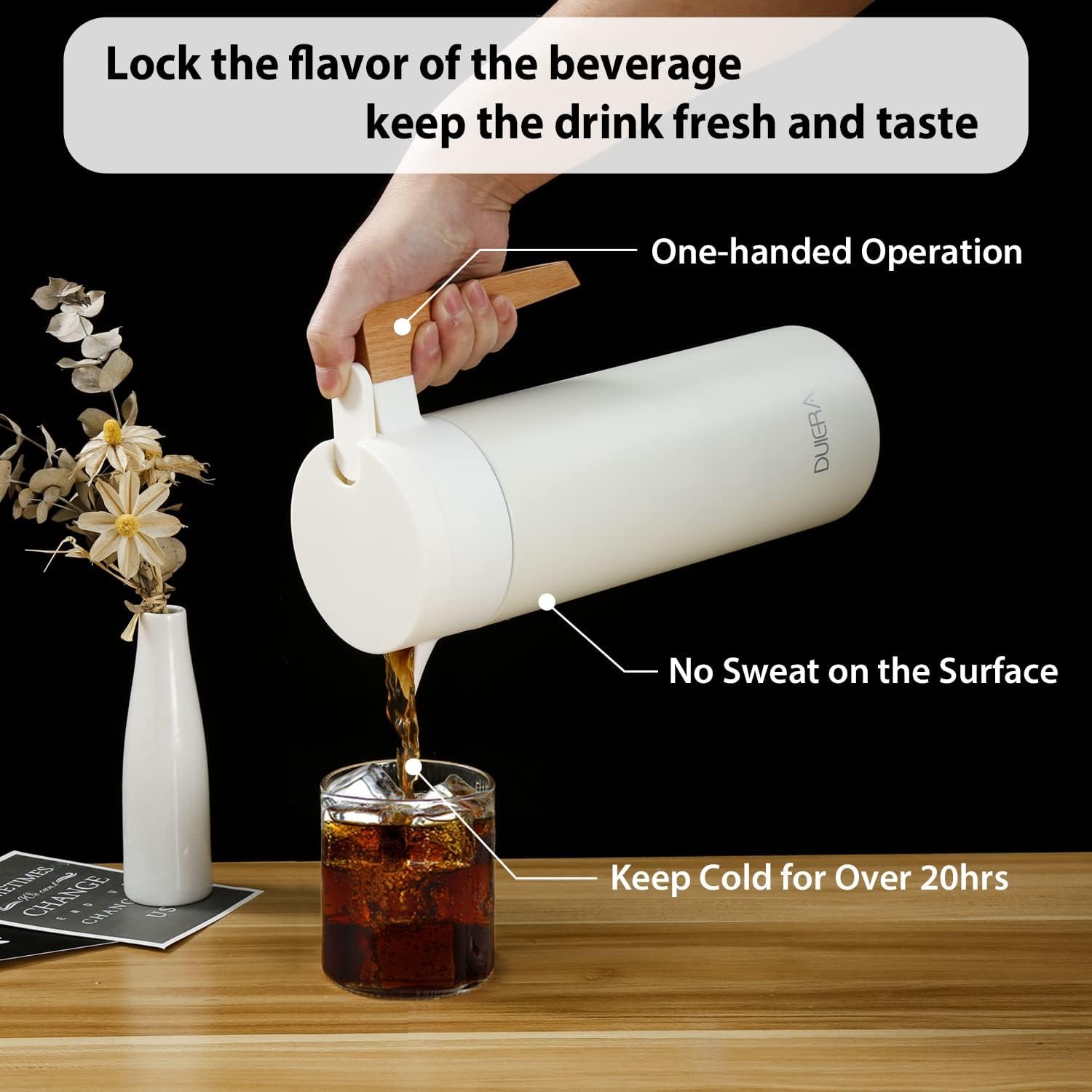 Elegant Outlooks & Friendly to Use-The coffee carafe insulated has wonderful size for drink and to handle, which is not too heavy for women and the elderly. And with the stylish outlook , the 51 oz carafe will well highlighting your good taste .The coffee carafe has a large capacity of 51 oz, which makes it perfect for serving beverages to a group of people. This means you don’t have to refill the carafe frequently, making it convenient for hosting events or gatherings.