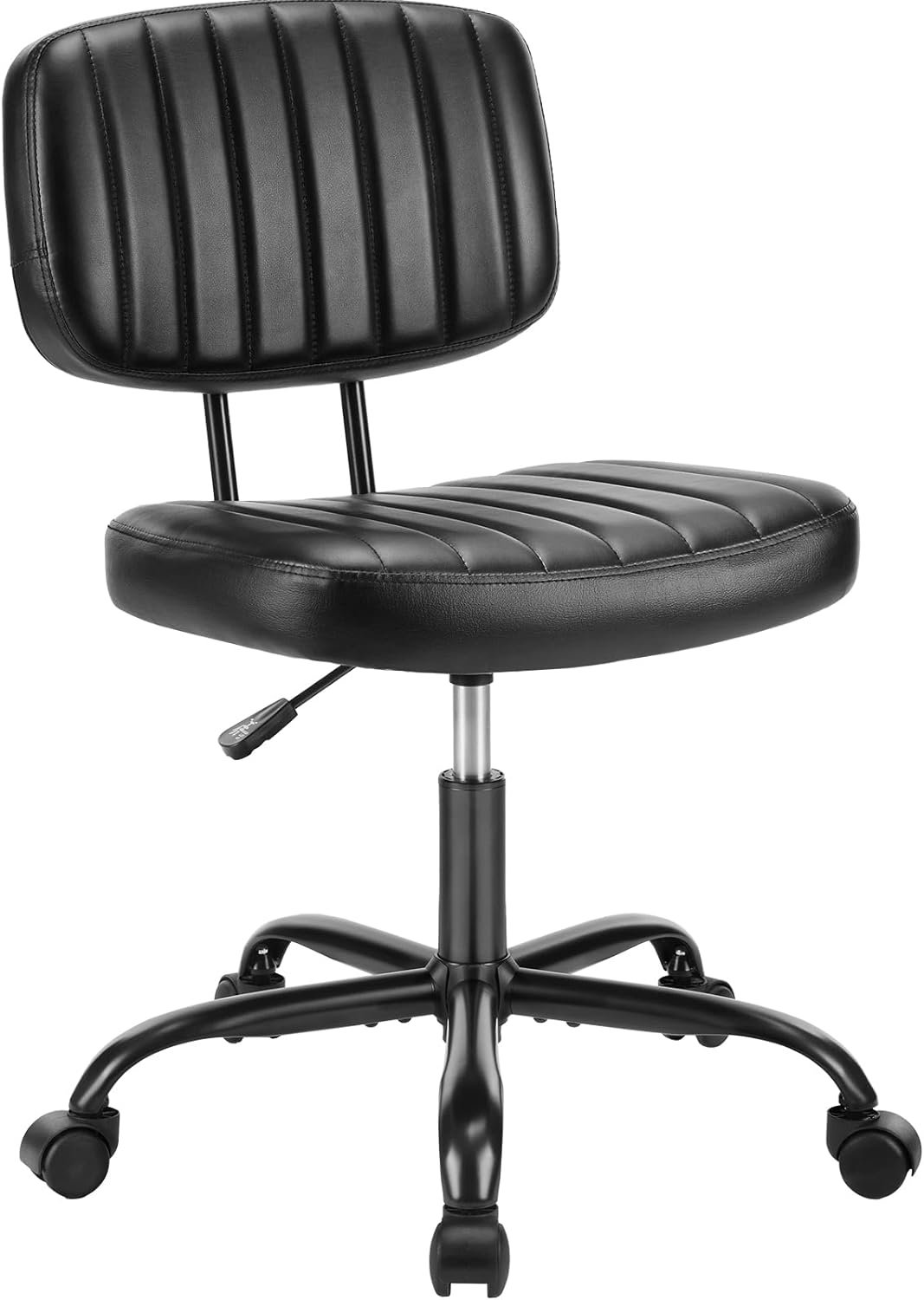 DUMOS Small Office Chair-Armless Desk Chair with Wheels and Lumbar Support, Height Adjustable Computer Chair, Black PU Leather Cute Vanity Chair Task Chair for Home and Work