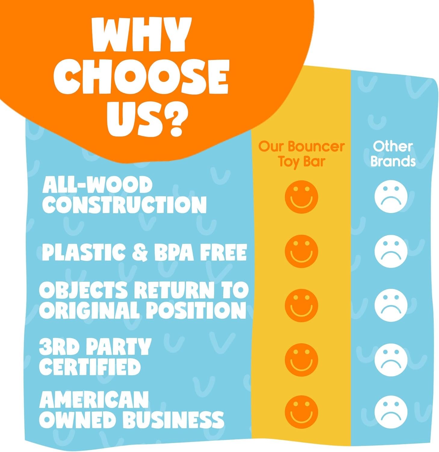 Durabasics Toy Bar Compatible with Baby Bjorn Bouncer Toy Bar – Engaging Colorful Shapes – All Wood – Spinnable – Nature-Inspired Figures Bar Compatible with Baby Bjorn Toy Bar