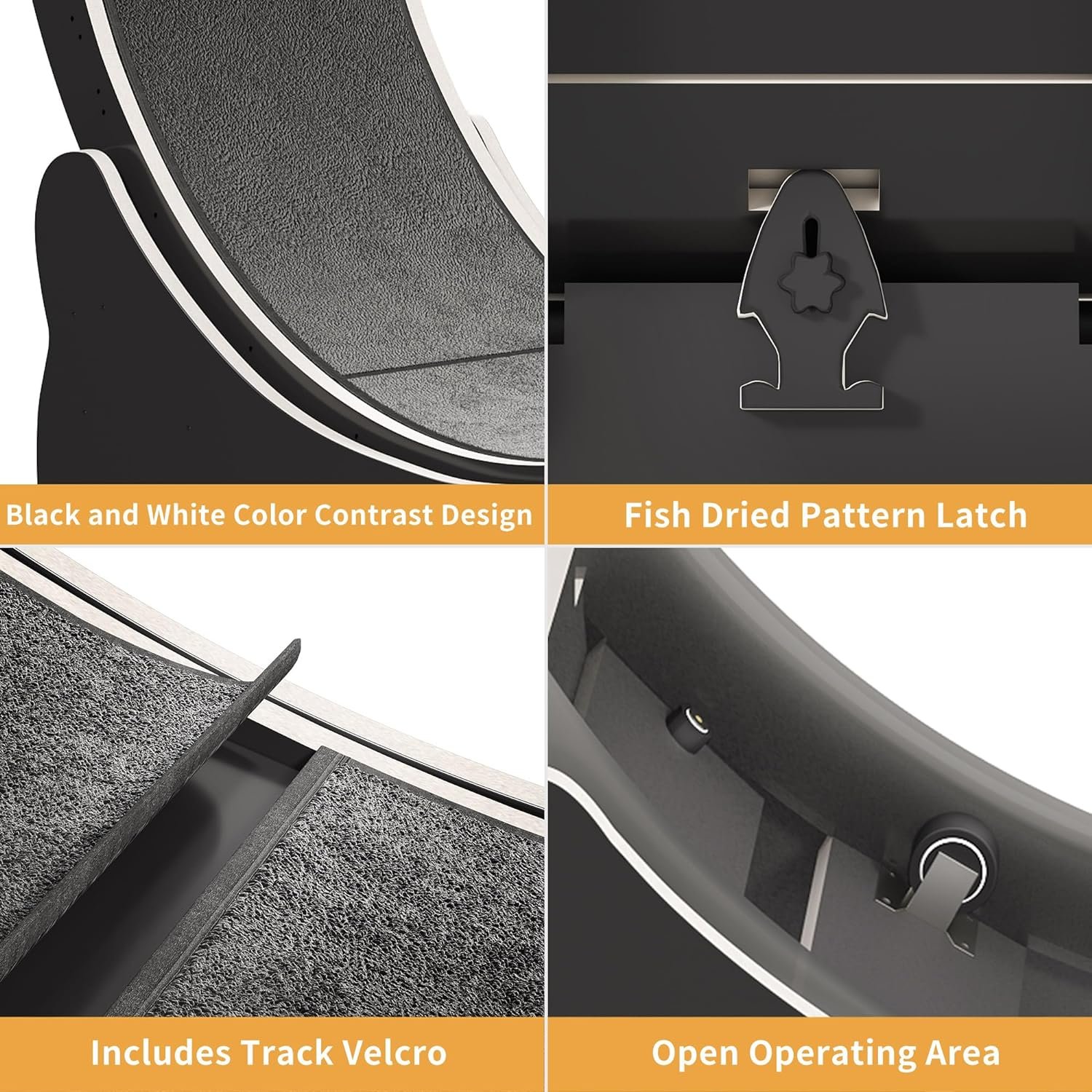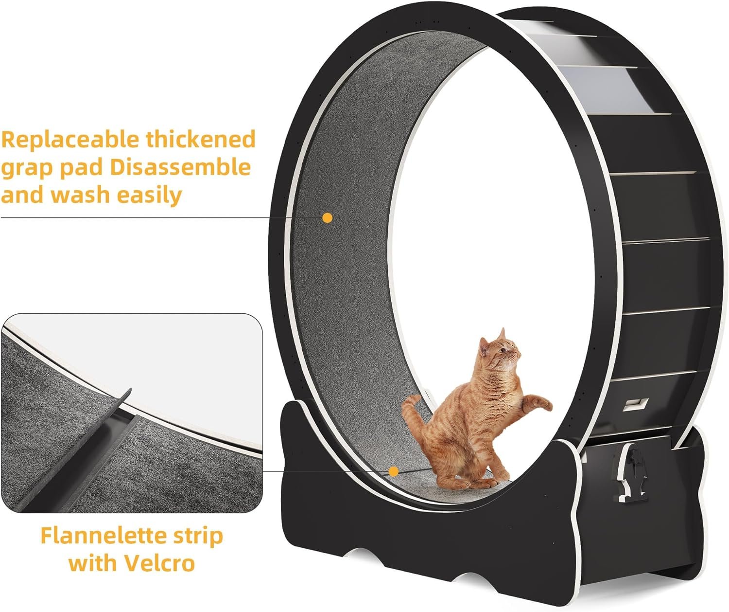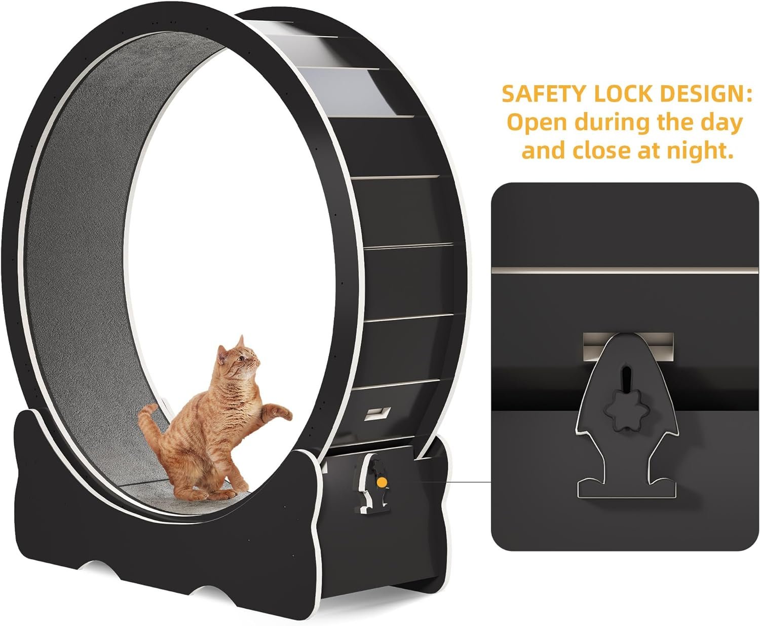 Noise Reduction & Security Lock: Featuring a silent wheel and noise reduction, it ensures a peaceful exercise zone. The built-in security lock allows controlled playtime, ensuring your cat’s safety during your absence