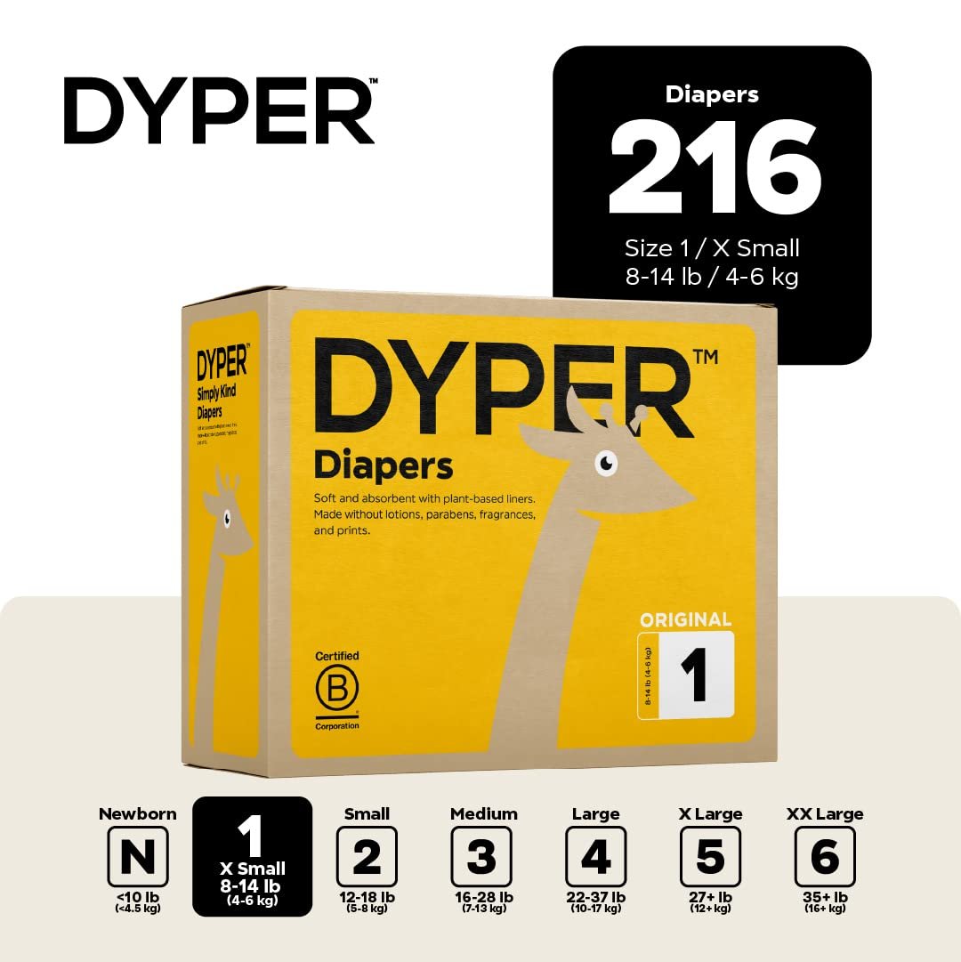 Each package contains 216 Size 1 (Extra Small) diapers for babies 8-14 lb.