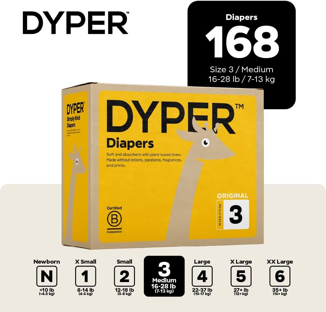 Contains 168 Size 3 diapers for babies 16-28 lbs & 1 pack of wet wipes