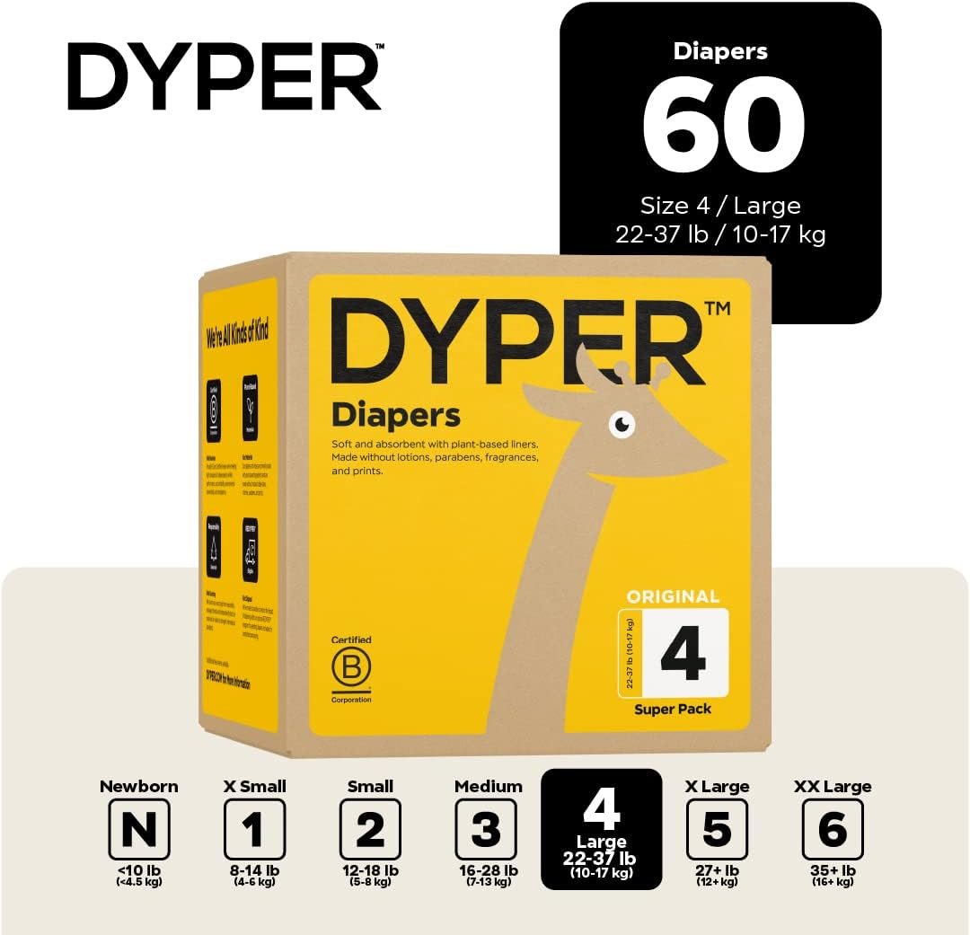 Be the first to review “DYPER Viscose from Bamboo Baby Diapers Size 4 | Unscented, Hypoallergenic, Plant-Based Disposable Diapers for Sensitive Skin, 60 Count”