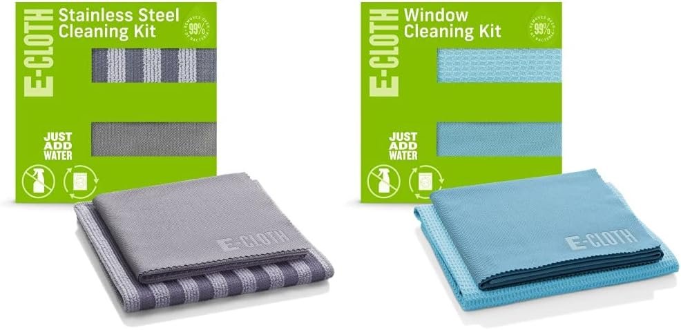 E-Cloth Stainless Steel Cleaning Kit, Microfiber Stainless Steel Cleaner for a Spotless Shine Home Appliances Including Oven, Stove and Refrigerators, Washable and Reusable, 100 Wash Promise