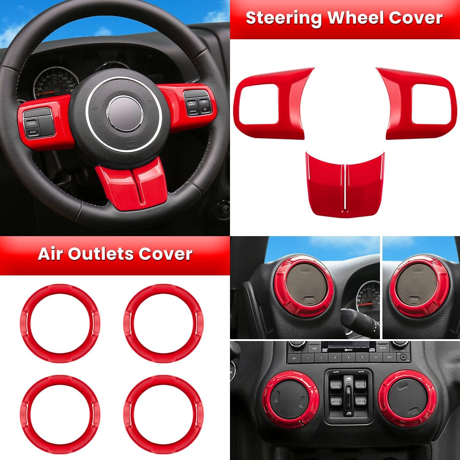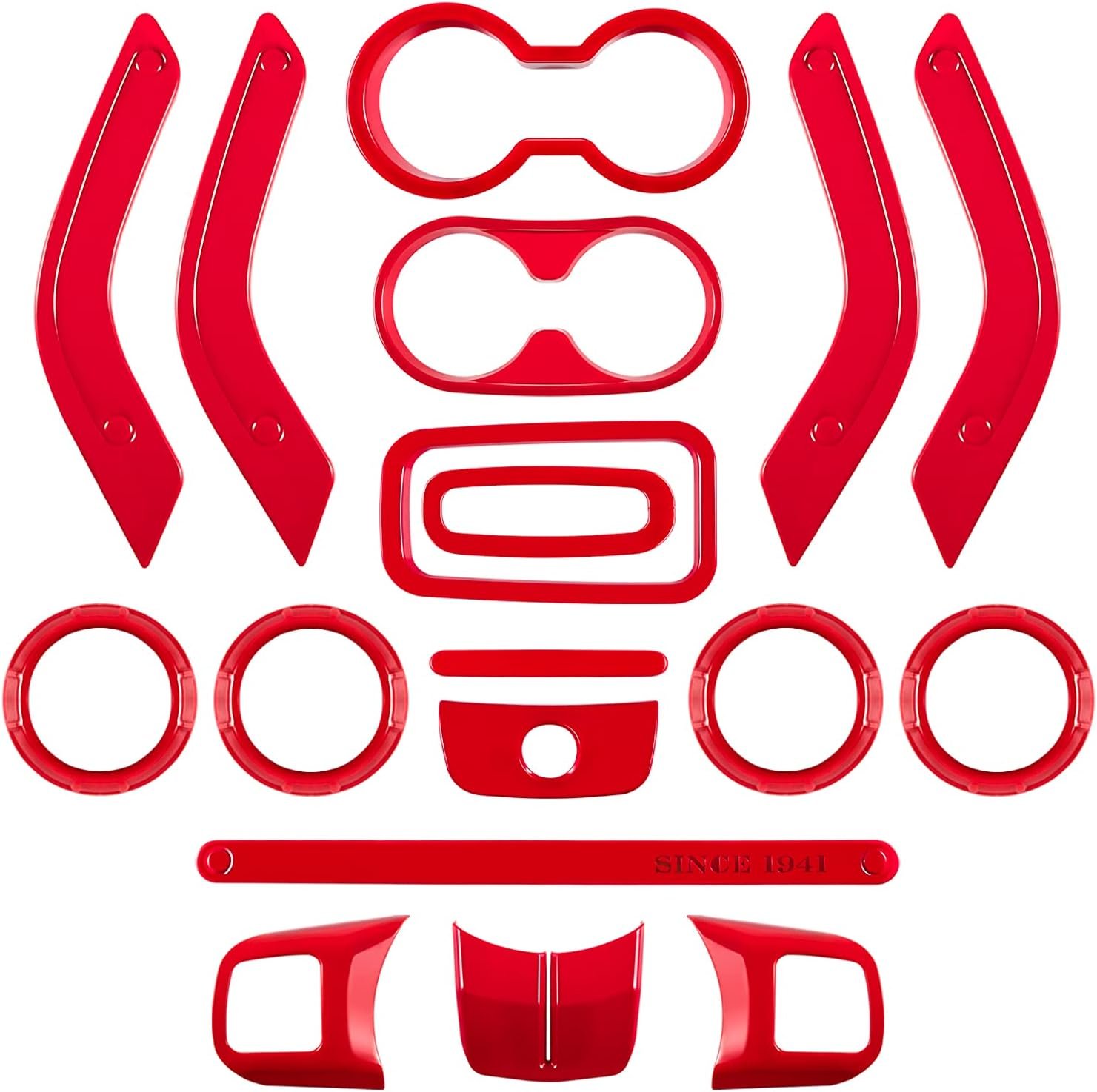 4 × Inner door handle covers4 × Air outlet covers3 × Steering wheel covers1 × Passenger seat handle cover1 × Armrest box key hole cover1 × Front cup holder cover1 × Rear cup holder cover1 × Transfer case cover1 × Handbrake cover1 × Gear box cover
