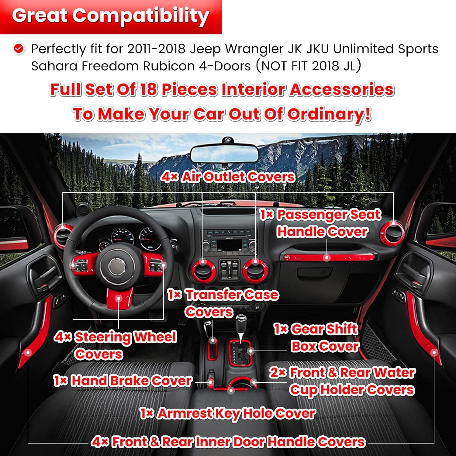 Great Compatibility — Perfectly fit for 2011 2012 2013 2014 2015 2016 2017 2018 Jeep Wrangler JK JKU Unlimited Sports Sahara Freedom Rubicon 4-Doors (NOT FIT 2018 JL).