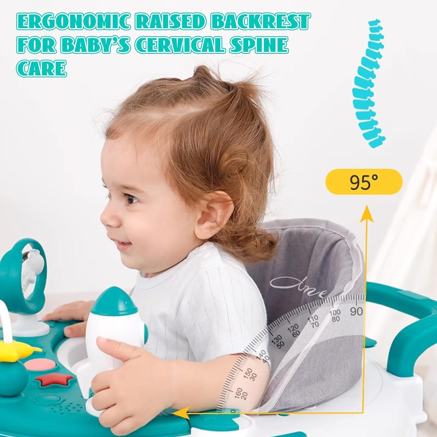 【Ergonomic Design】This sit to stand walker adopts a pyramid anti roll design to protect the baby’s safety. The circular large chassis design with 8 silent wheels allows the baby to walk steadily with every step. 95 ° ergonomics, with a raised backrest to protect the baby’s cervical spine.
