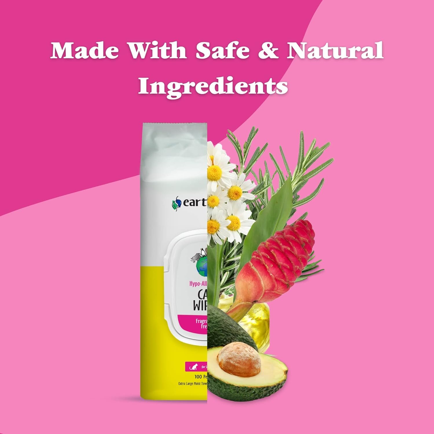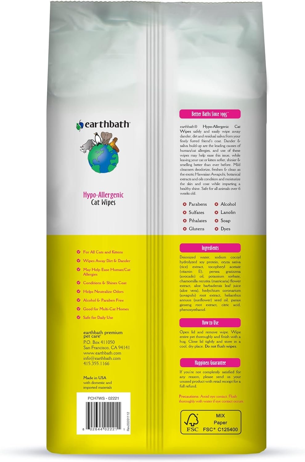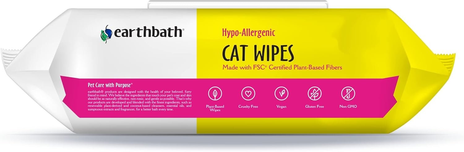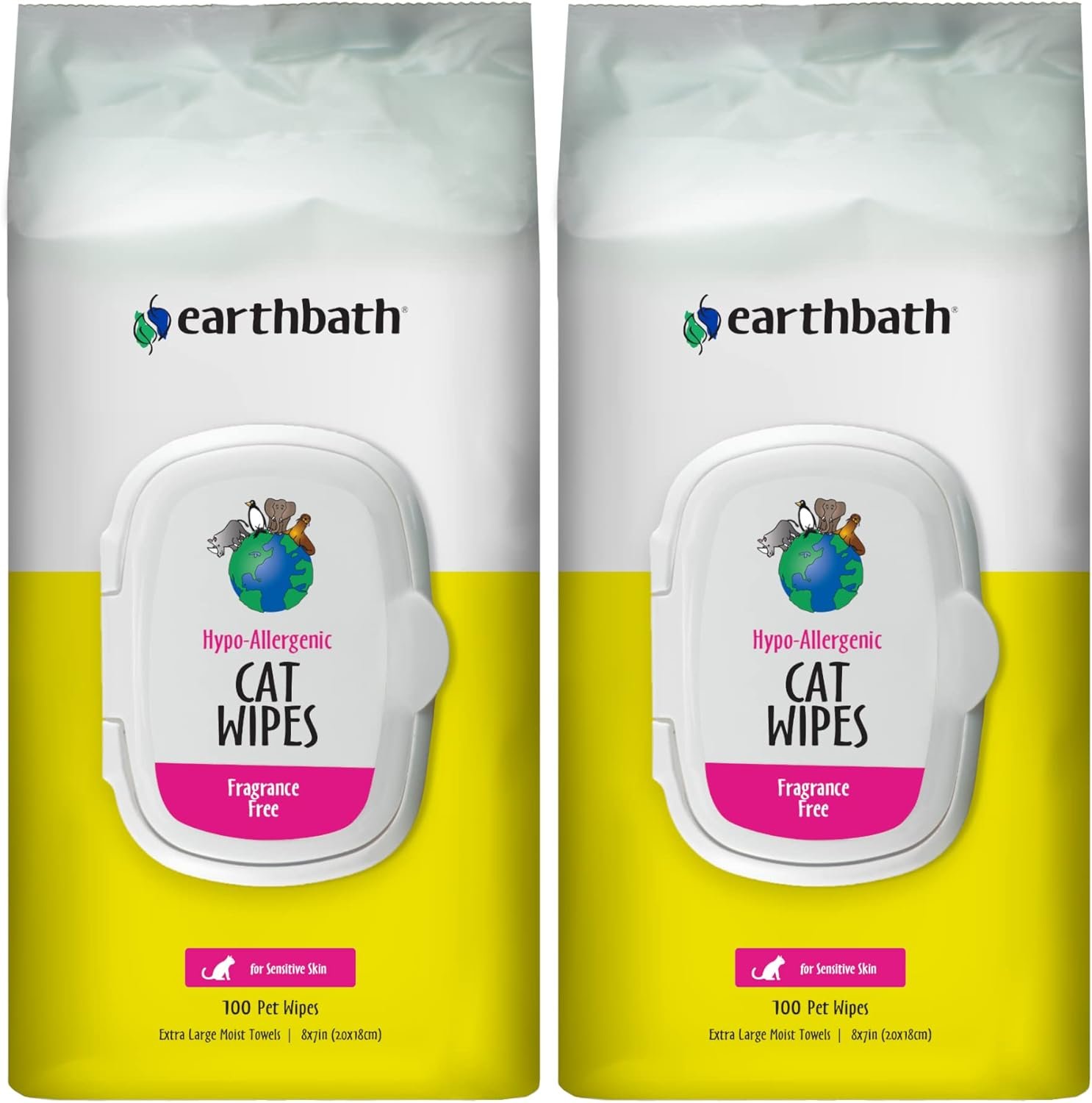 earthbath, Hypo-Allergenic Cat Wipes – Fragrance Free Cat Wipes for Paws and Butt, Best Pet Wipes for Cats with Sensitive Skin, Made in USA, Cruelty-Free Cat Cleaning Wipes – 100 Count (2 Pack)