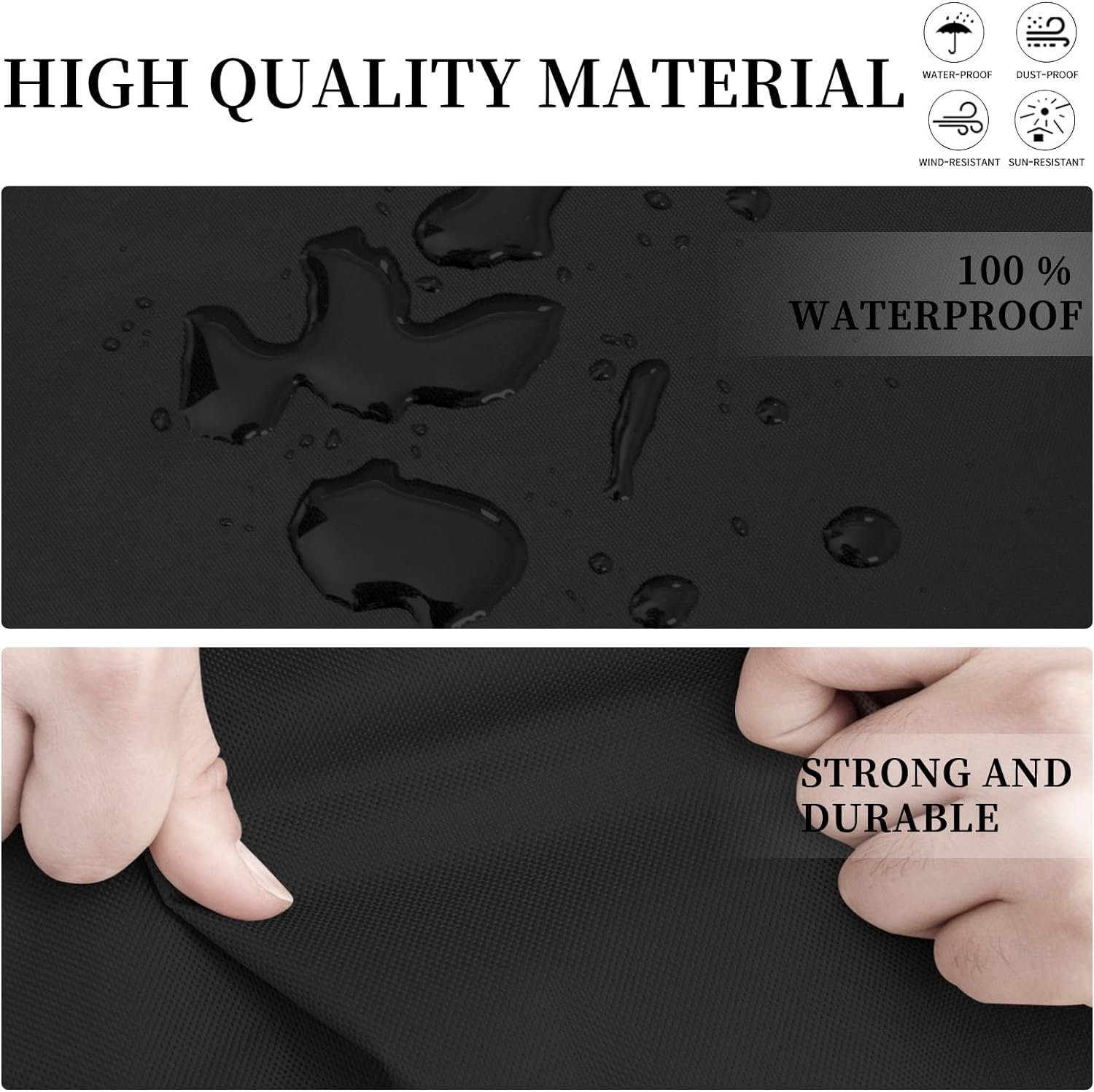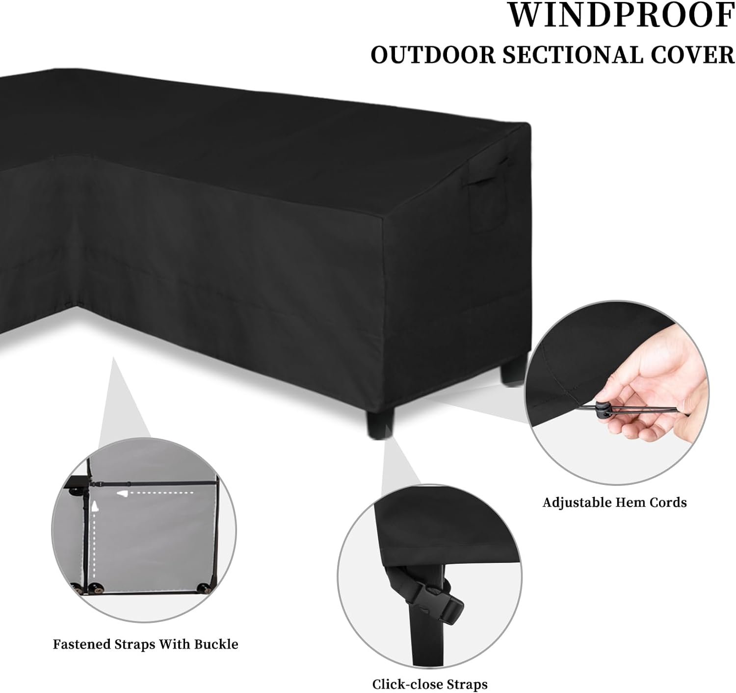 Waterproof Patio Sectional Cover: Made by water resistant thick oxford fabric with PVC back coating. It is 100% waterproof, providing protection against wind, rain, frost, UV rays, dirt, dust or bird droppings, keeps your furniture set to be safe, clean and dry.