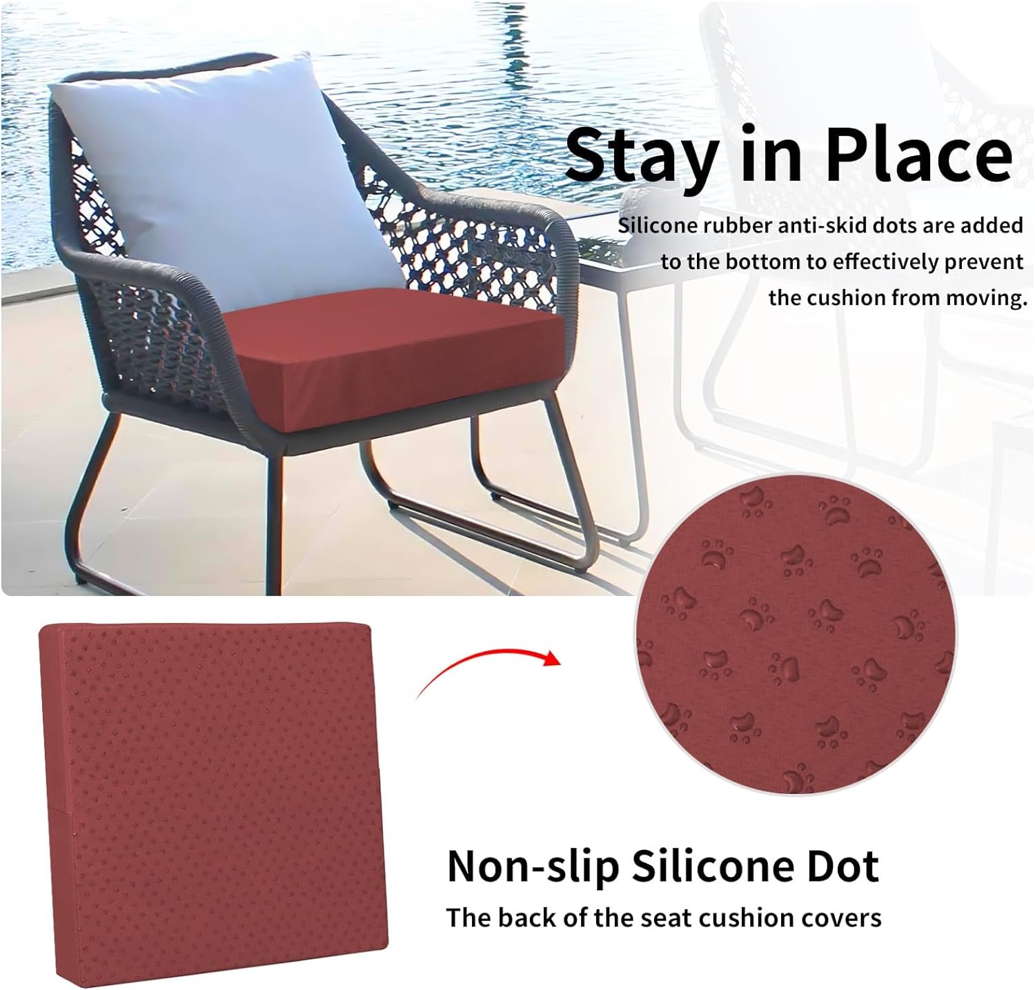 Waterproof Material: Crafted of thick waterproof oxford material, waterproof material to protect your cushions from spills, wear & tear, adds longevity to your cushion.
