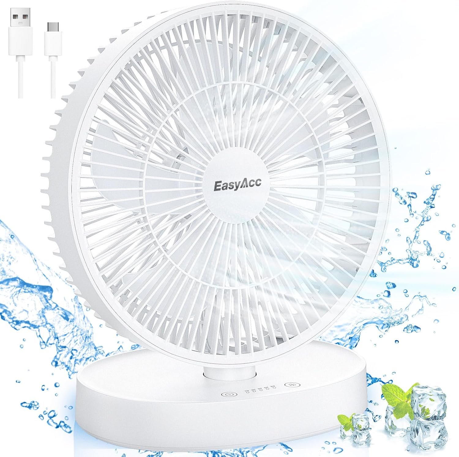 【USB Fan & IP67 Waterproof】 The small desk fan is powered by USB and compatible with PC/laptop, power bank, AC adapter, wall charger and other USB-enabled power supply. he front and rear angles of the bedside fan are adjustable by 15°, IP67 Waterproof design, the whole machine can be cleaned (after cutting off the power) for cleaning to keep your air always fresh. (Note: without battery)