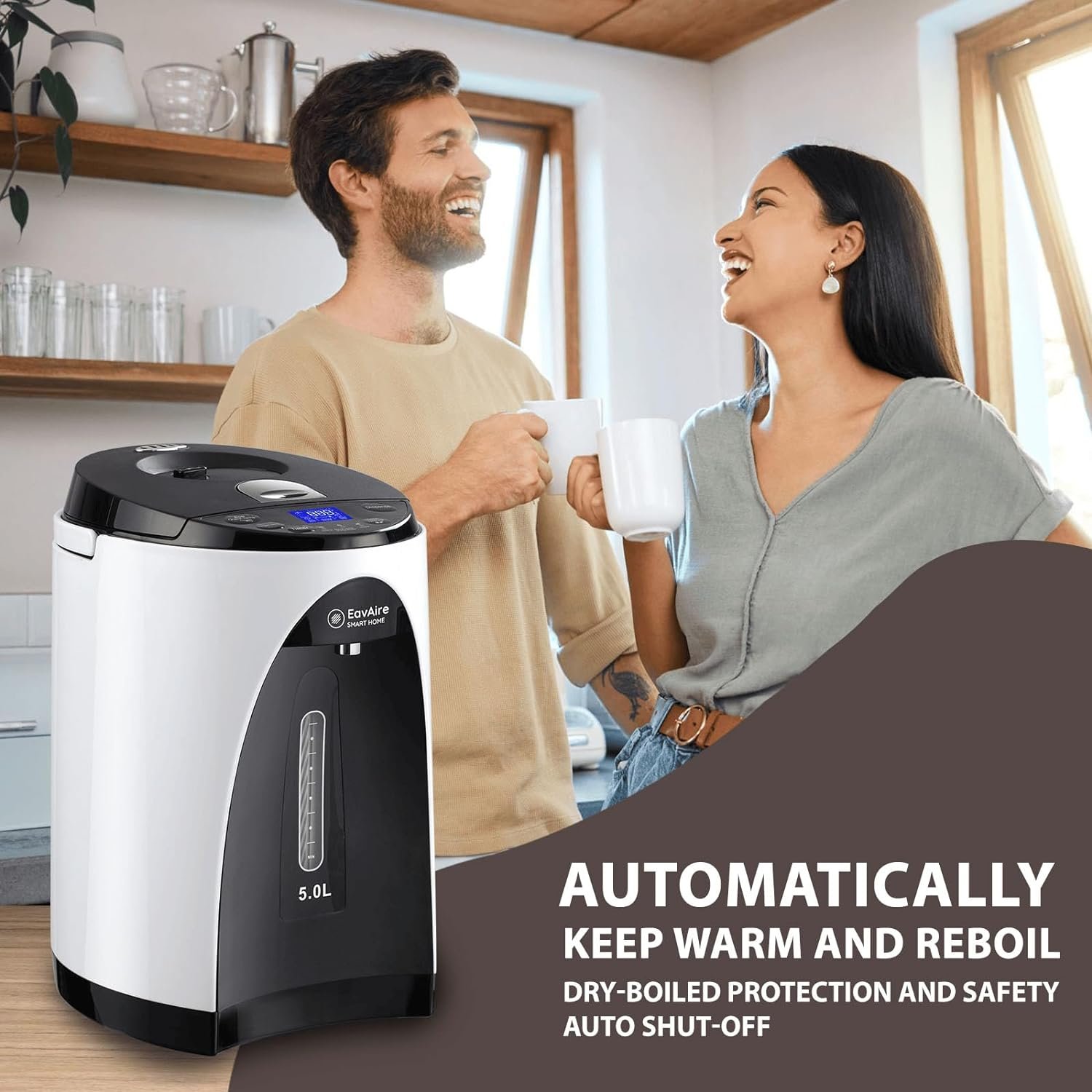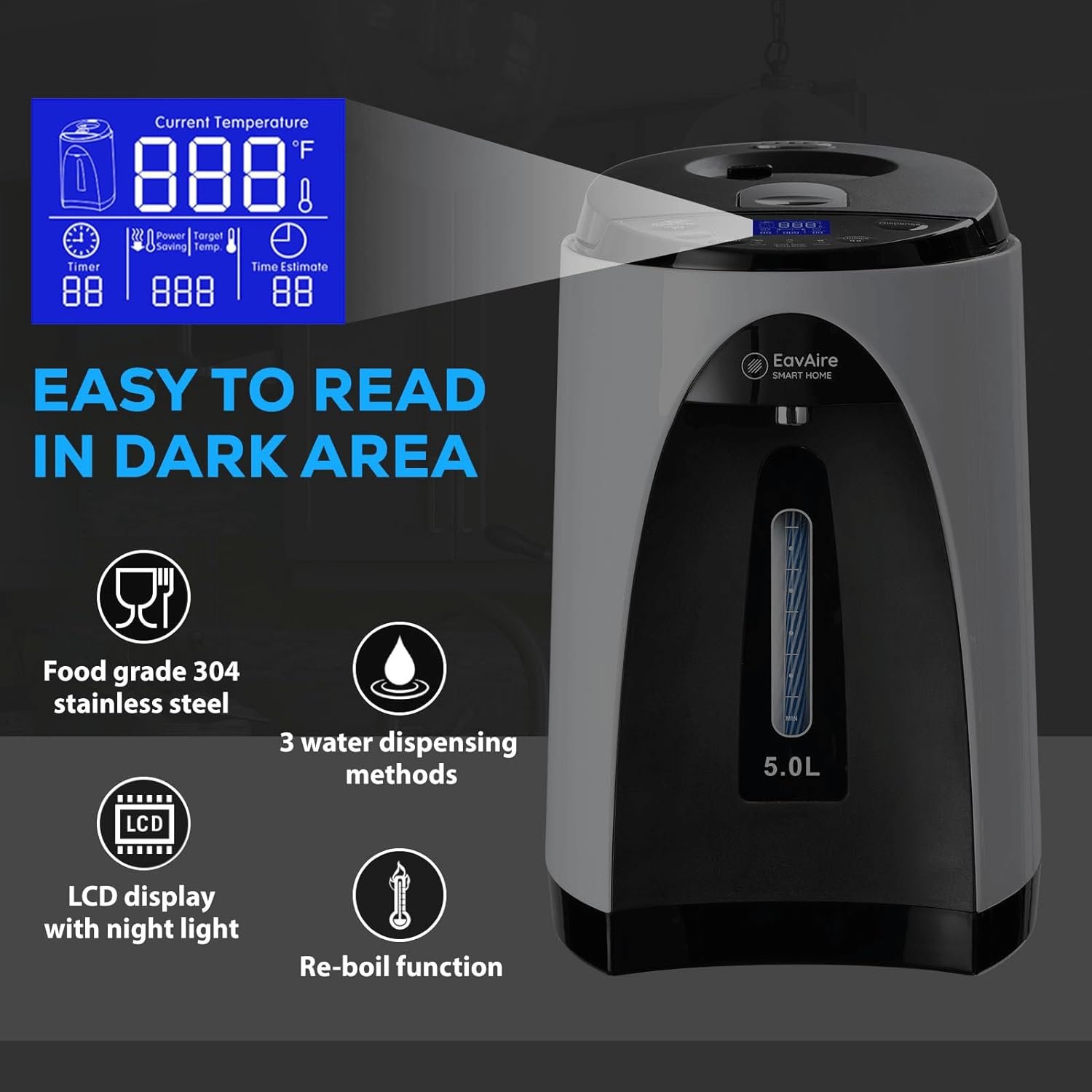 EavAire Digital Water Boiler Kettle Warmer, Fahrenheit Temp Display, Shabbat Manual Pump, Child-Proof Lock, Quick-Temp or Boil Option, Modern Design for Tea, Coffee, 5 Liter Capacity, Home and Office