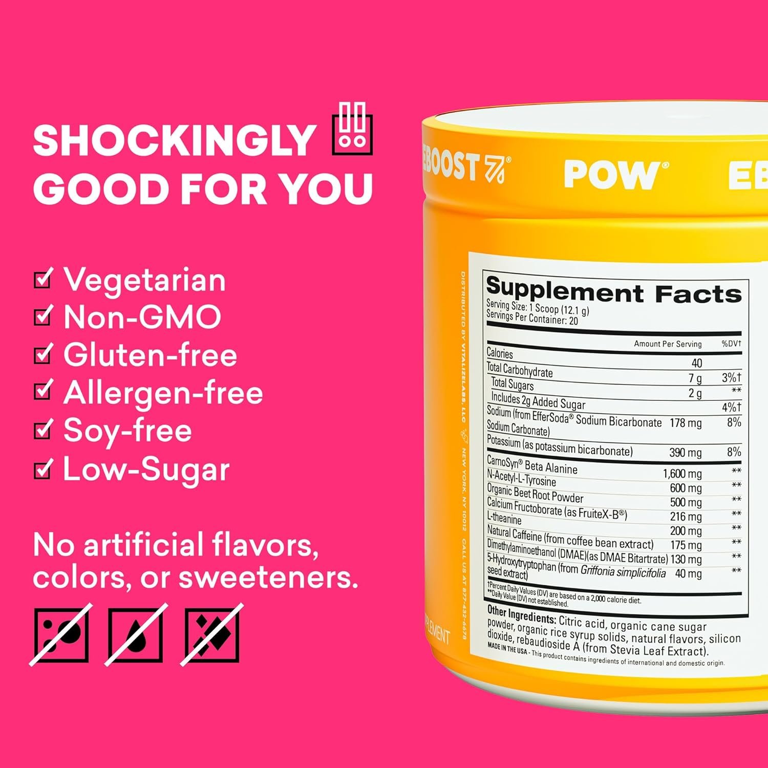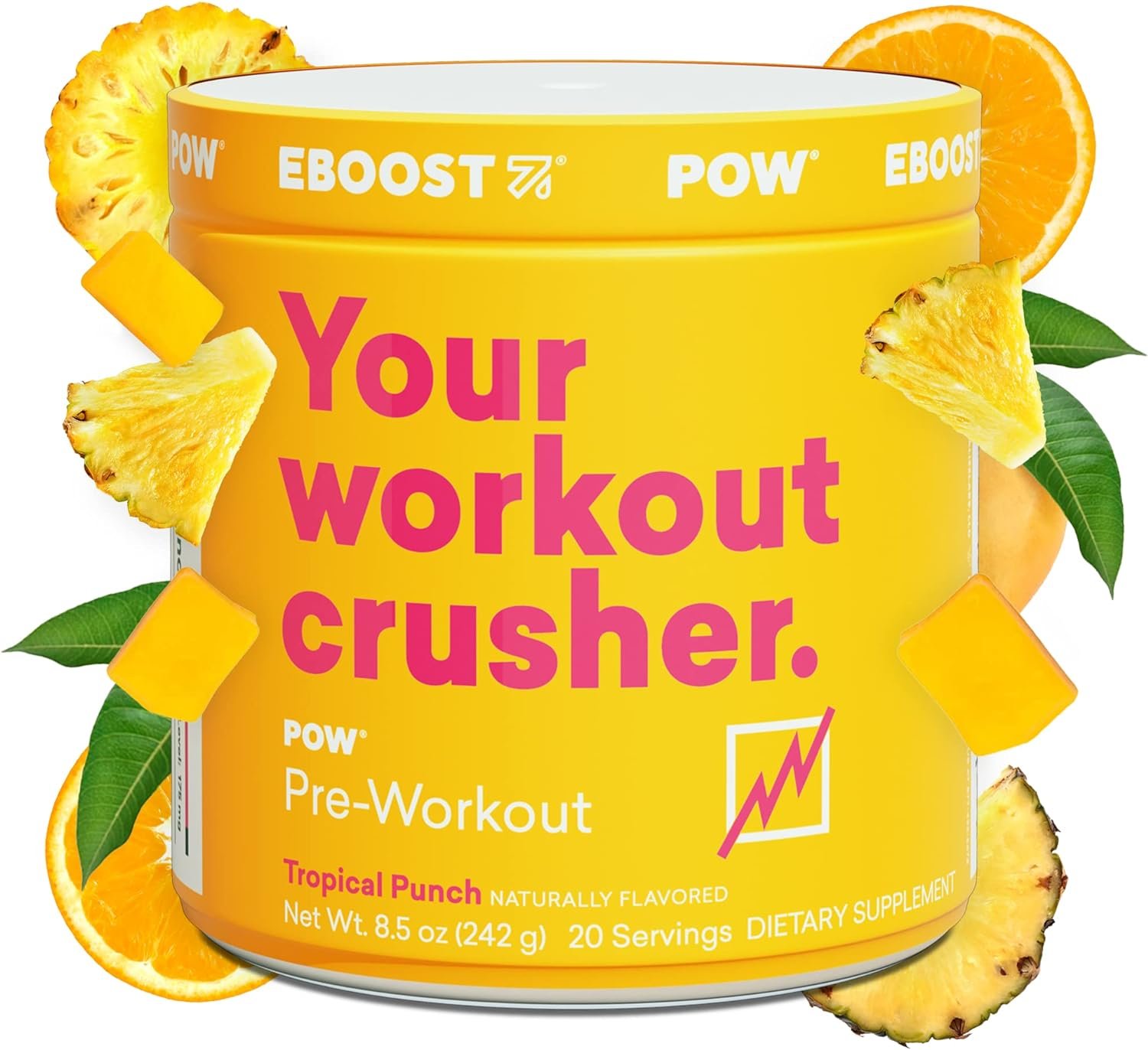 Supercharge Your Performance: POW is a natural pre workout that enhances your mind and muscles to help you maximize your workouts. Work out hard and recover smoothly with ingredients in doses that deliver. Flavor: Tropical Punch. 20 Servings
