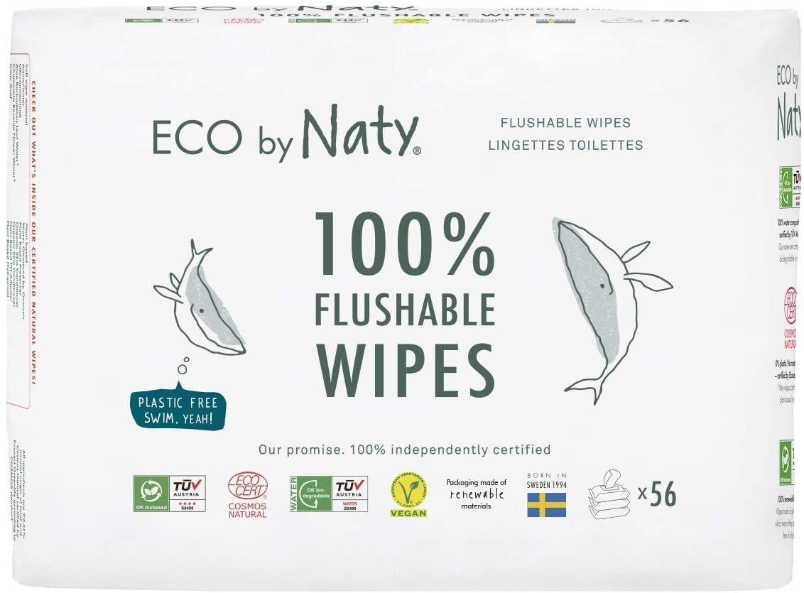 Eco by Naty Flushable Baby Wipes – Compostable and Plant-Based Wipes, Chemical-Free and Hypoallergenic Baby Wipes Safe for Baby Sensitive Skin, 56 Wipes Per Pack (3 Pk)