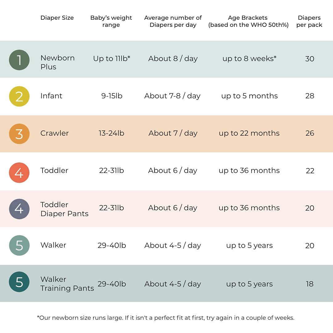 🌱 1 pack of world-leading eco diapers / training pants (count varies per size, 10 sizes available.) Over 90% plant-based & biodegradable / 40% more absorbency / reduces irritation / eliminates diaper rash / 12+ hours leak free / soft, breathable natural layers.