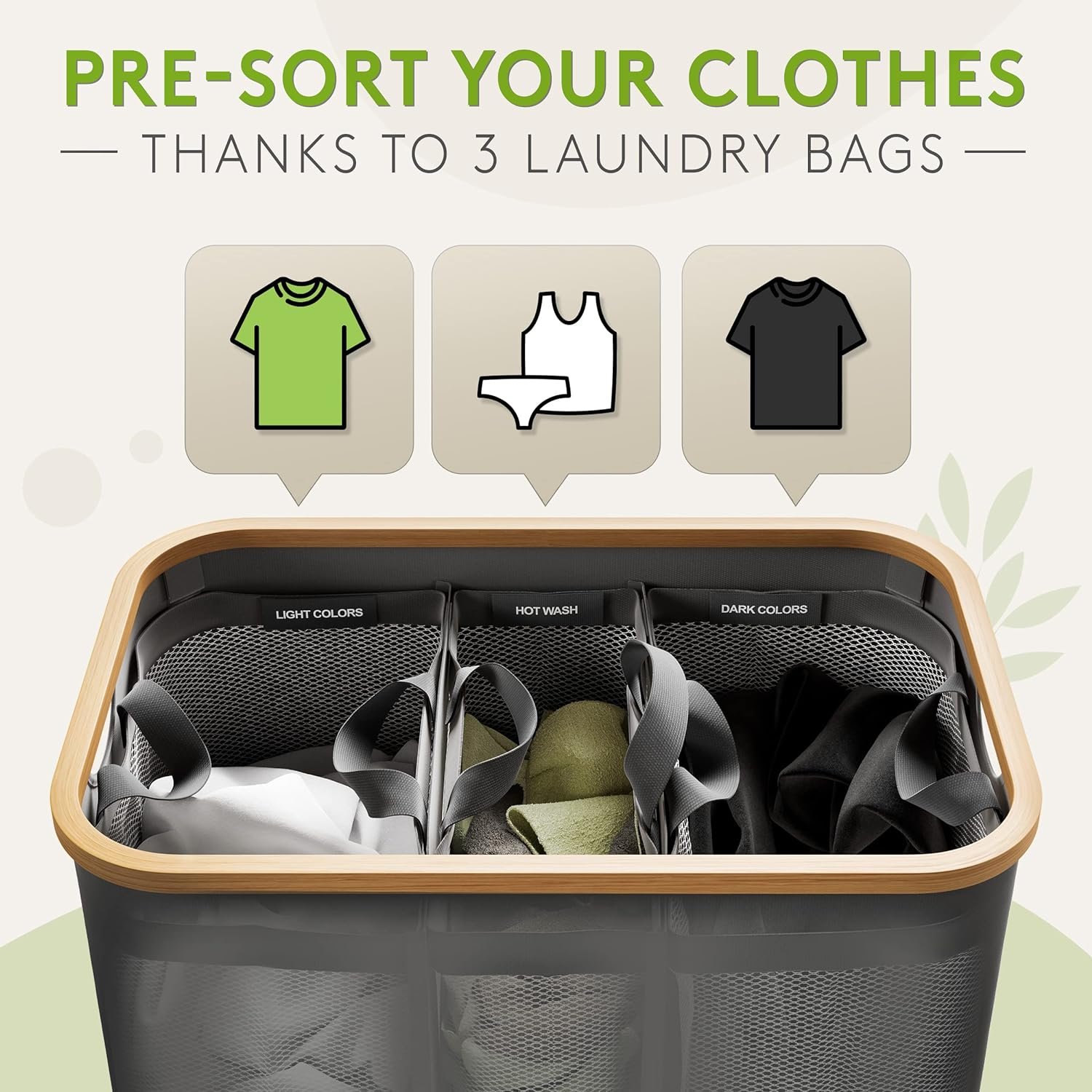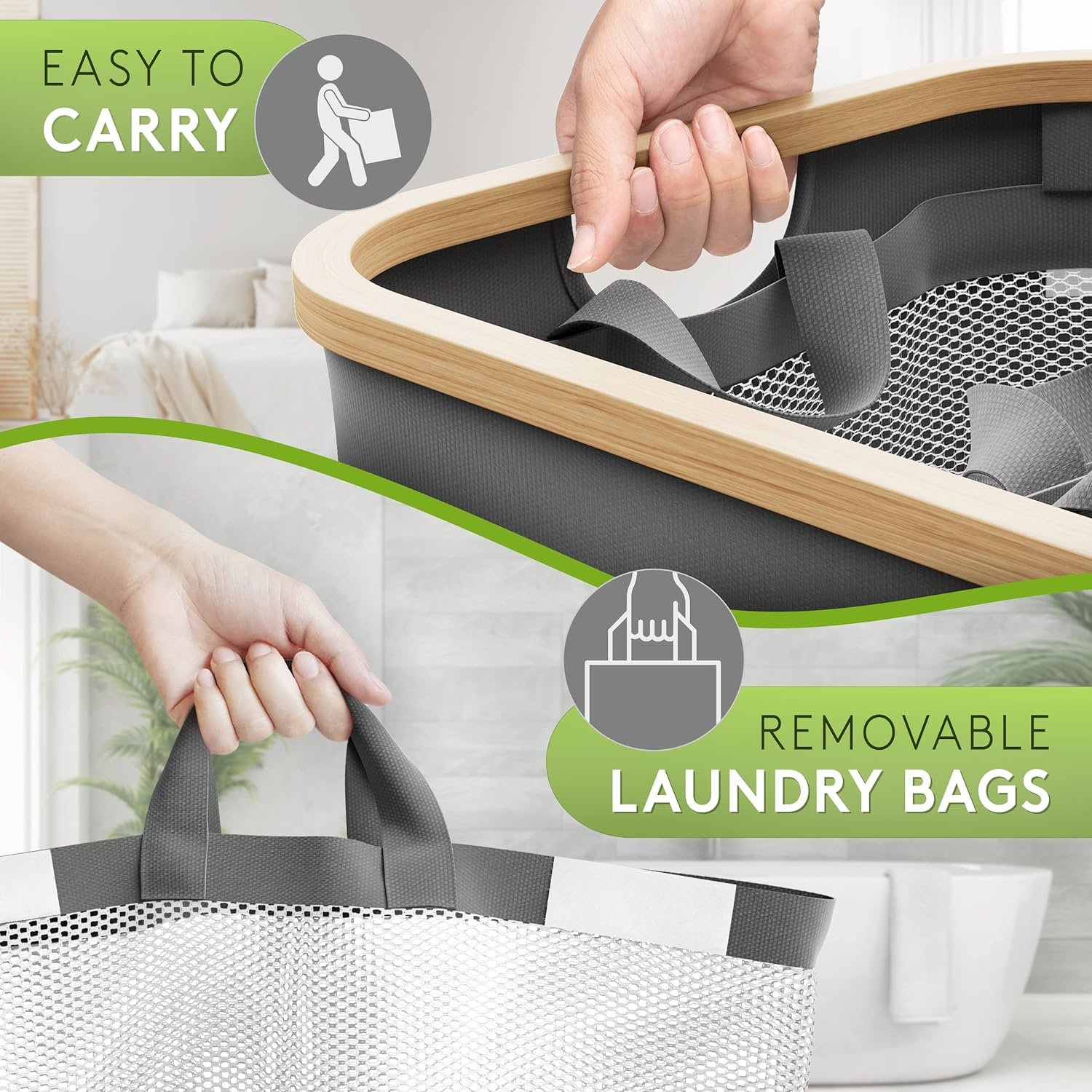 ✅ 𝐑𝐄𝐌𝐎𝐕𝐀𝐁𝐋𝐄 𝐖𝐀𝐒𝐇𝐈𝐍𝐆 𝐁𝐀𝐆𝐒 – Our practical hampers for bedroom contain 3 removable and washable laundry bags with handles. Thanks to these included washing nets, your laundry bin stays hygienic & always smells great!