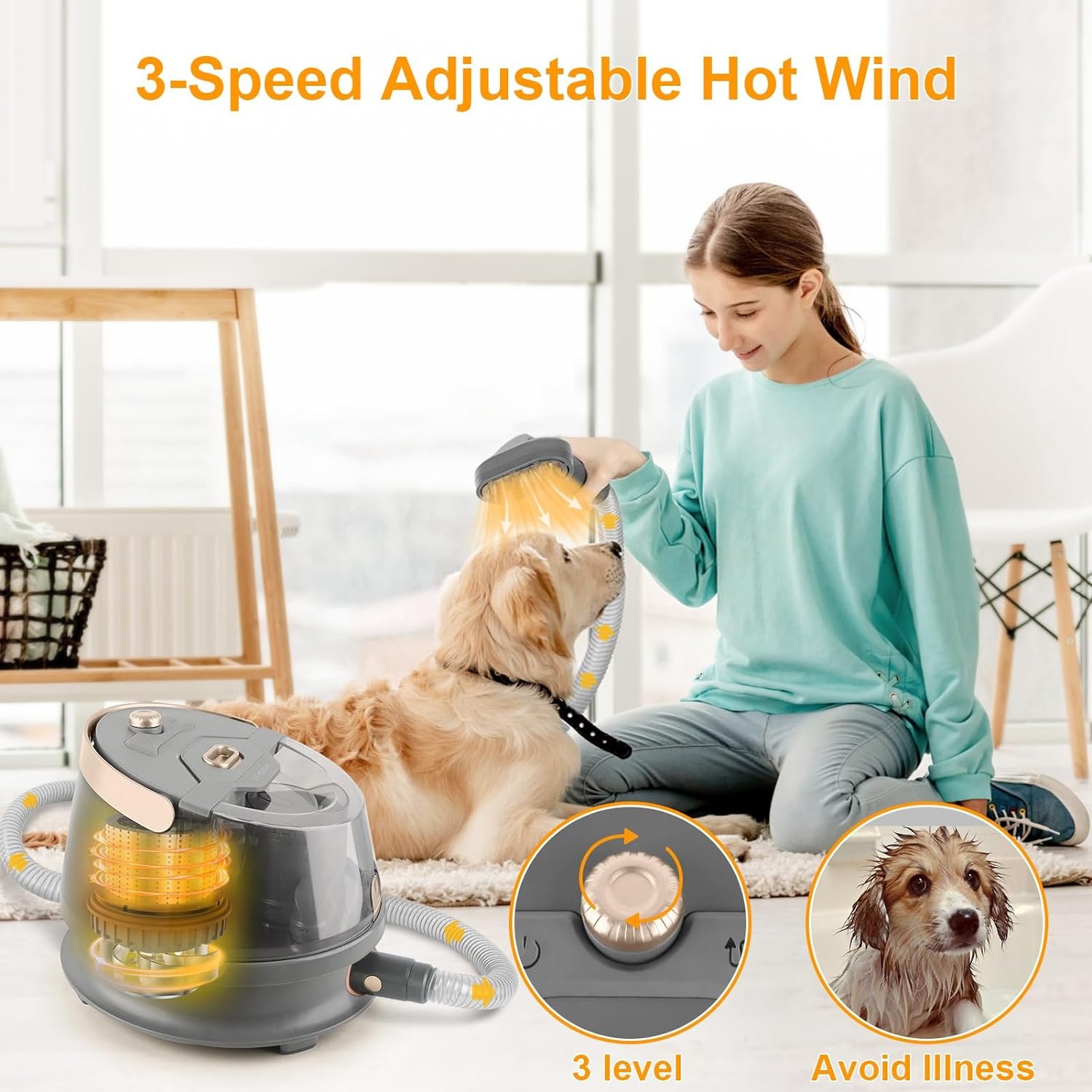 🔥【Heat-Enhanced Luxury】Our standout feature? Built-in heating Pet hair Vacuum. Picture this: as you pamper your pet, the gentle warmth from our pet groomer, especially when used with the Massage Hot Air Brush, not only keeps your pet comfortable but also provides a spa-like experience. And yes, it still handles all the regular hair-sucking duties with ease. Suction-Warm Blowing It is the Tech we have for this version and different from others!