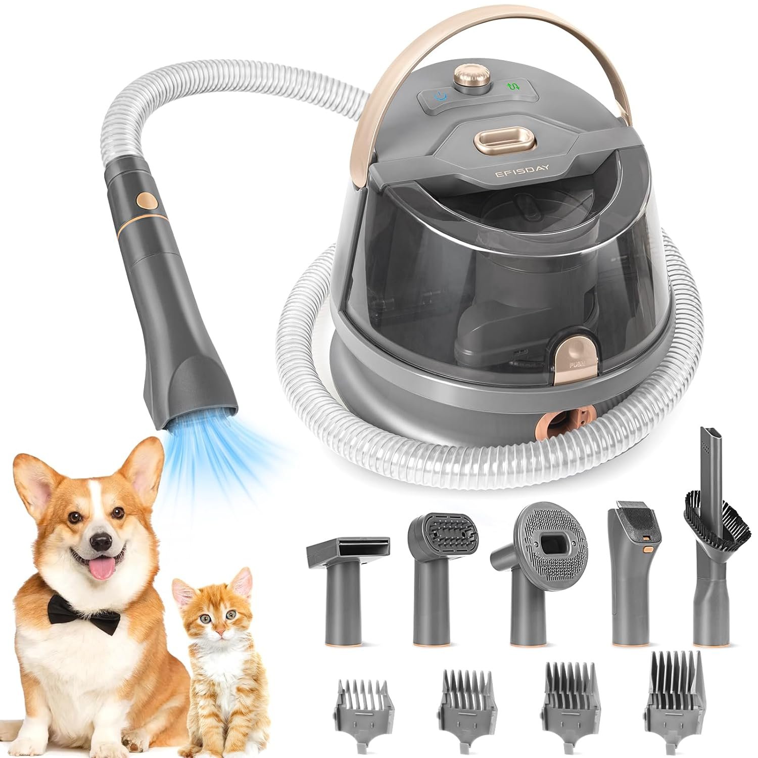 EFISDAY Dog Hair Vacuum & Grooming Kit, Hot Wind Suction 99.99% Pet Hair One-Piece Suction-Warm Blowing, 8 Grooming Tools Hair Vacuum 2.5L Large Dust Cup Home Pet Hair Grooming Vacuum Shedding Groomer