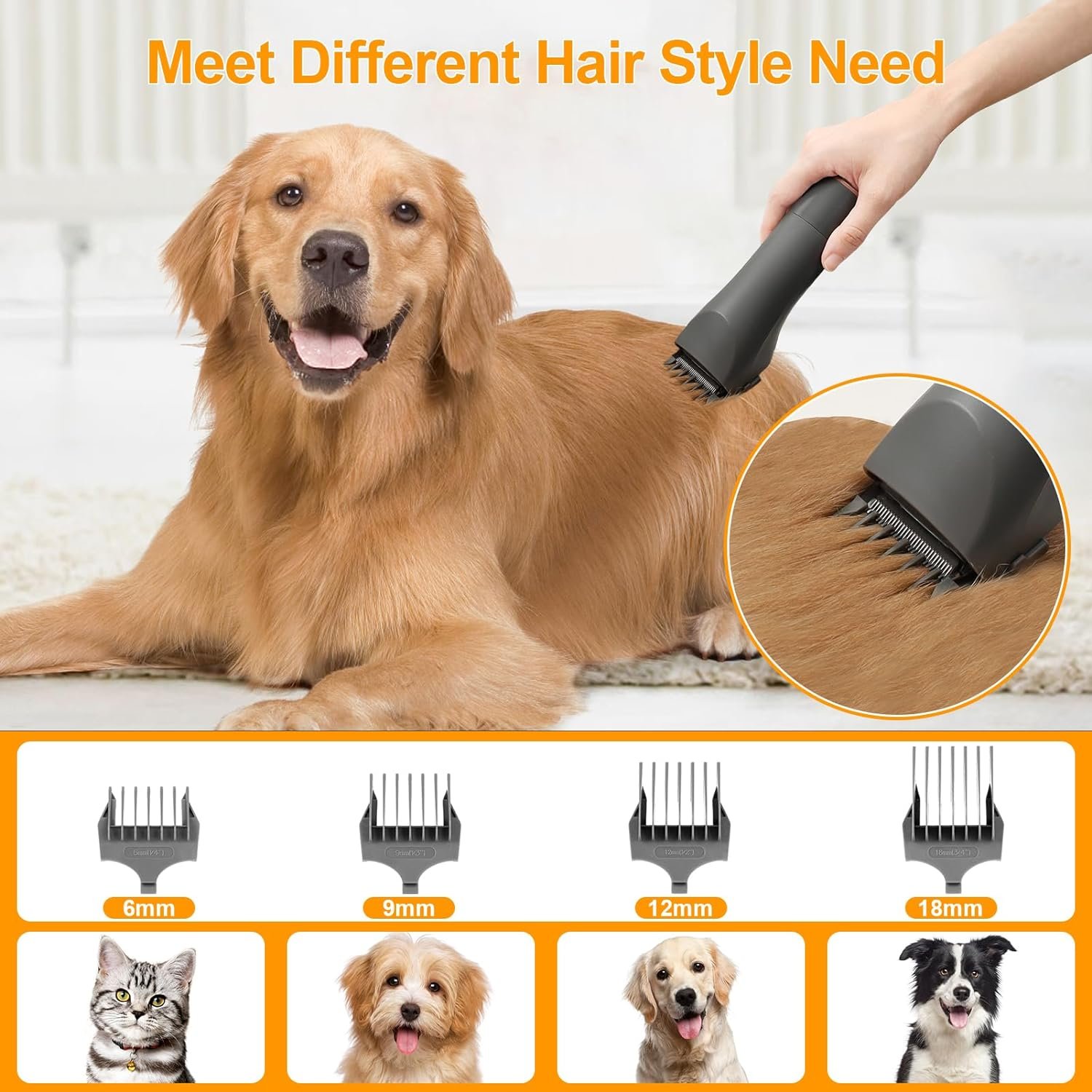 🐾【One-piece Suction-Warm Blowing】EFISDAY Pet grooming Kit come with 10 Pet Grooming Tools(Four Combs): With 5 detachable accessories including a Grooming brush, DeShedding brush, Electric clipper, Nozzle with cleaning brush, the soothing Massage Hot Air Brush, grooming your pet is no longer a chore but a delightful bonding experience. Enjoy hassle-free grooming with adjustable trimming combs (3mm/6mm/9mm/12mm) and quick-changing detachable guide combs Make your Pets Stylish!