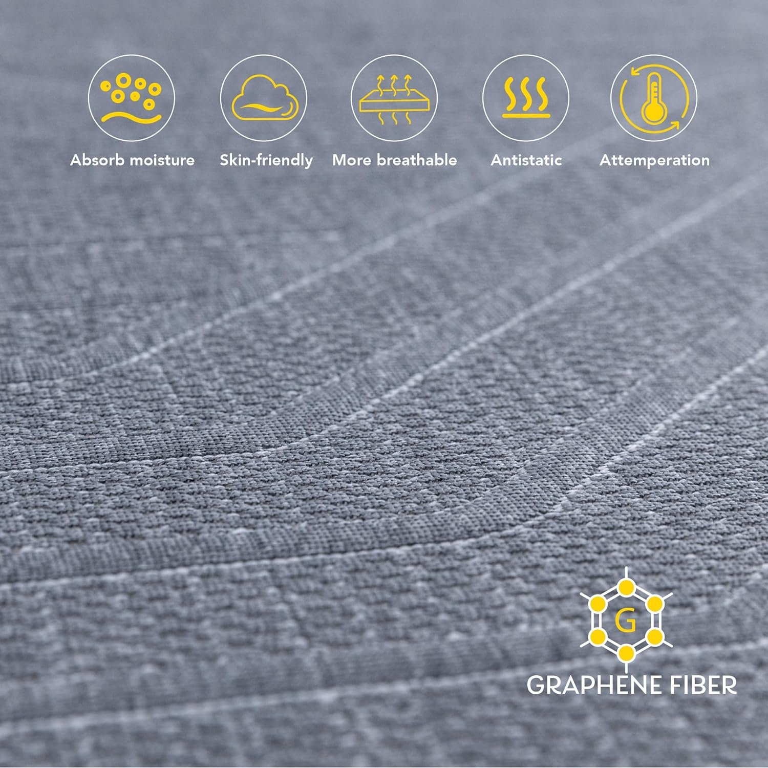 Graphene Technology Cover: Nylon-feel cover is deodorizing and has antistatic qualities. Therapeutic properties from its far infrared fabric promote blood circulation. Cooper gel memory foam regulates moisture, odor, and temperature, which can ensure your mattress stays dry and breathable.