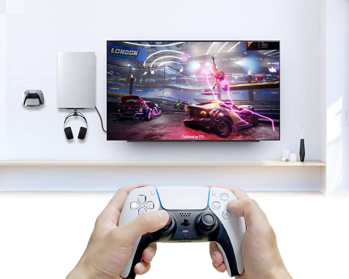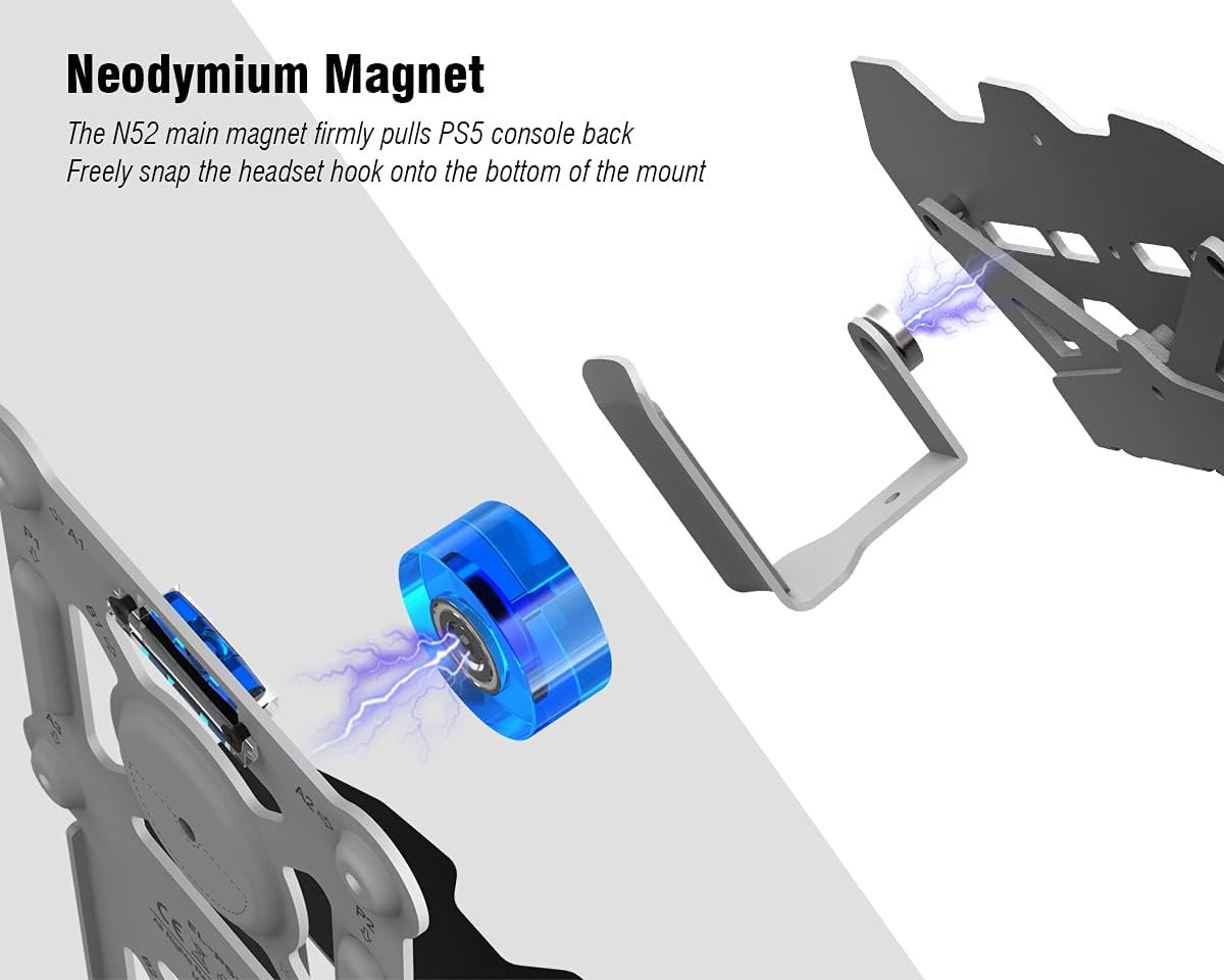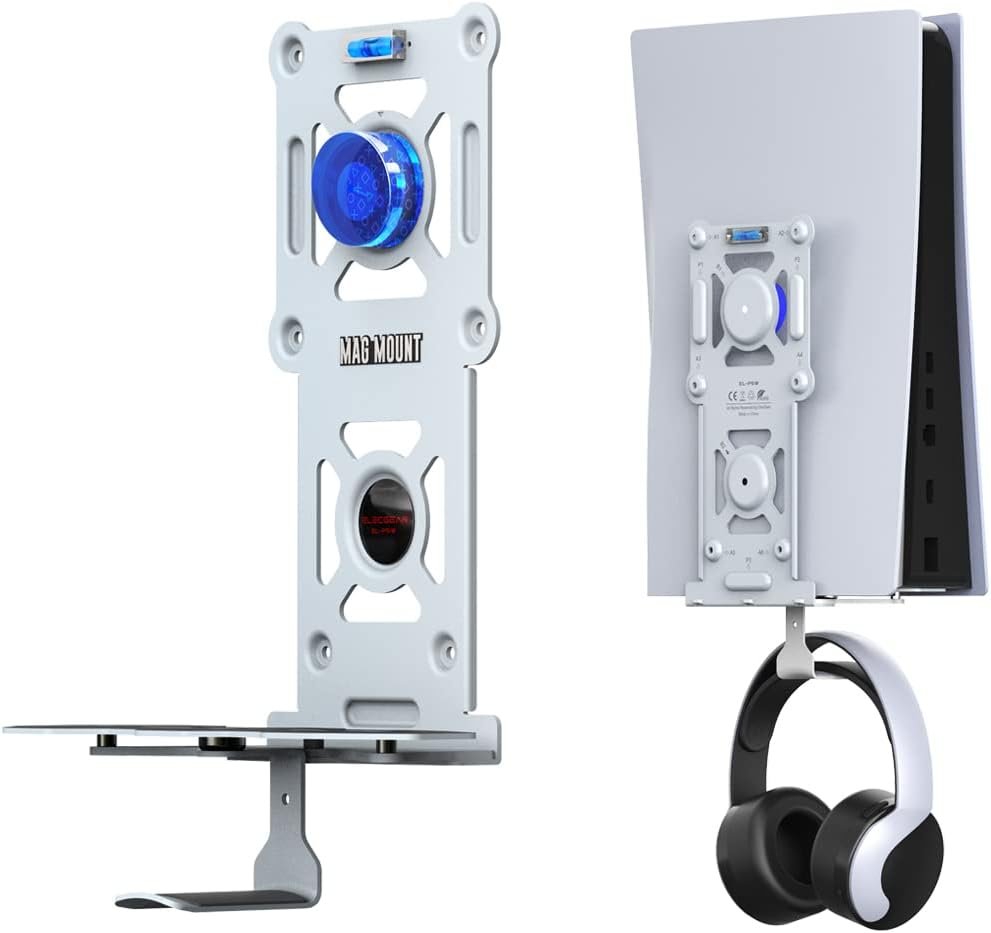 ElecGear PS5 Magnetic Wall Mount, Metallic Mount for Playstation 5 Ultra HD and Digital Edition, Pulse 3D Gaming Headset Hook, Magnets and Built-in Level Design fits Left or Right Beside TV
