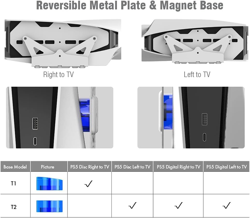 [PS5 Magnetic Wall Mount] – The patent pending wall mount is exclusively designed for PlayStation 5. Sturdy metal, strong magnets and flipable structure work with both PS5 Disc and Digital editions. You can position it left or right to your big TV set. All metallic and magnetic, invisible and detachable design delivers the most durability and accessibility