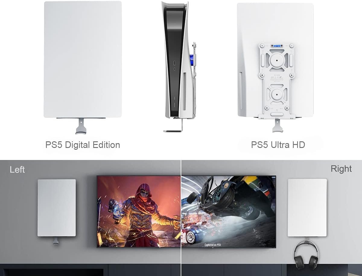 [Invisible and Left & Right Options] – Miniature and invisible profile will never spoil the look of PS5. The reversible horizontal plate makes it possible to mount left or right according to where your TV is. The open frame design and offset from wall provide optimal cooling and airflow. Save space and maintain a clean and organized appearance with no more clutter on your desk