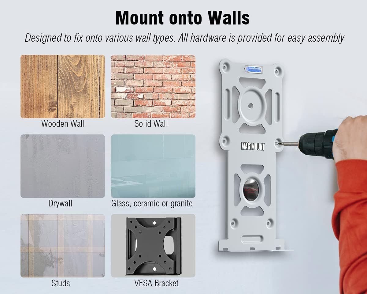[Mount it on Various Walls] – Designed to fix onto various wall types. 1. Screw it onto wooden wall. 2. Fasten onto solid brick wall with expansion bolts. 3. Fix it with drywall anchors. 4. Paste onto a smooth surface like glass, ceramic or granite. 5. Screw it onto drywall stud / frame. 6. Attach it to a VESA bracket in 100×100 standard. All hardware is provided for easy assembly