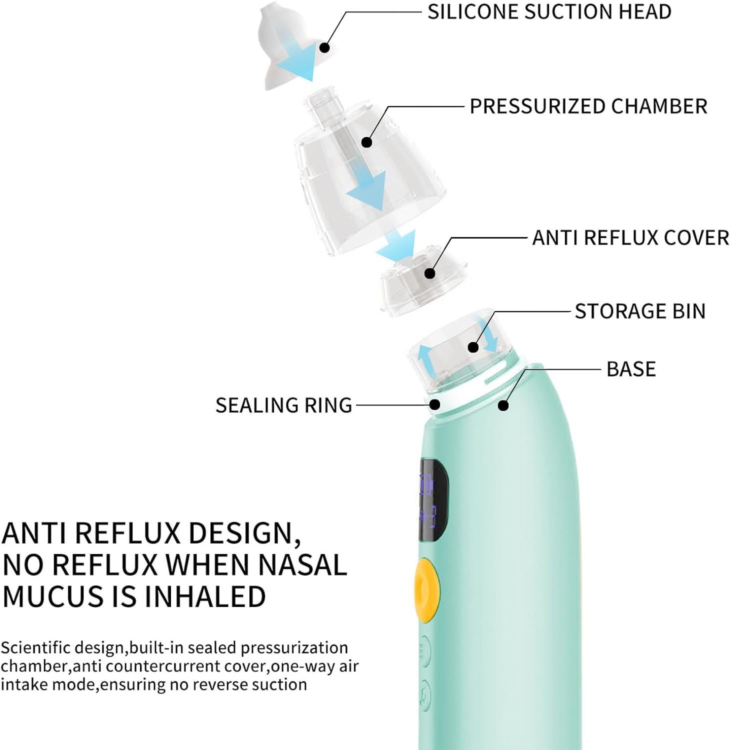【ADJUSTABLE & EFFECTIVE 】Nose aspirator has 3 levels of suction. You can choose multiple level to clean booger mucus.And the gental and strong suction help you clean it easily and quickly
