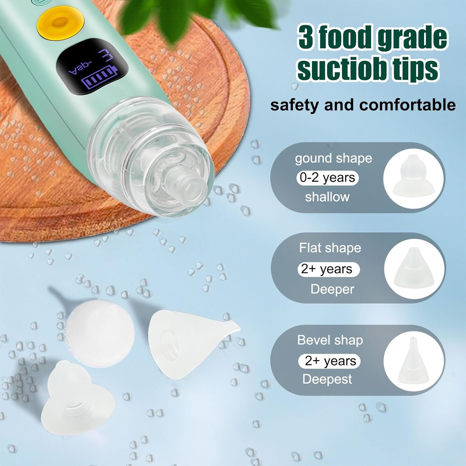 【SAFETY & COMFORTABLE 】Nose sucking cleaner has 3 food grade silicone reusable tips which is tasteless and meet different thickness of mucus and baby age. They are soft and won’t scratch or poke kid