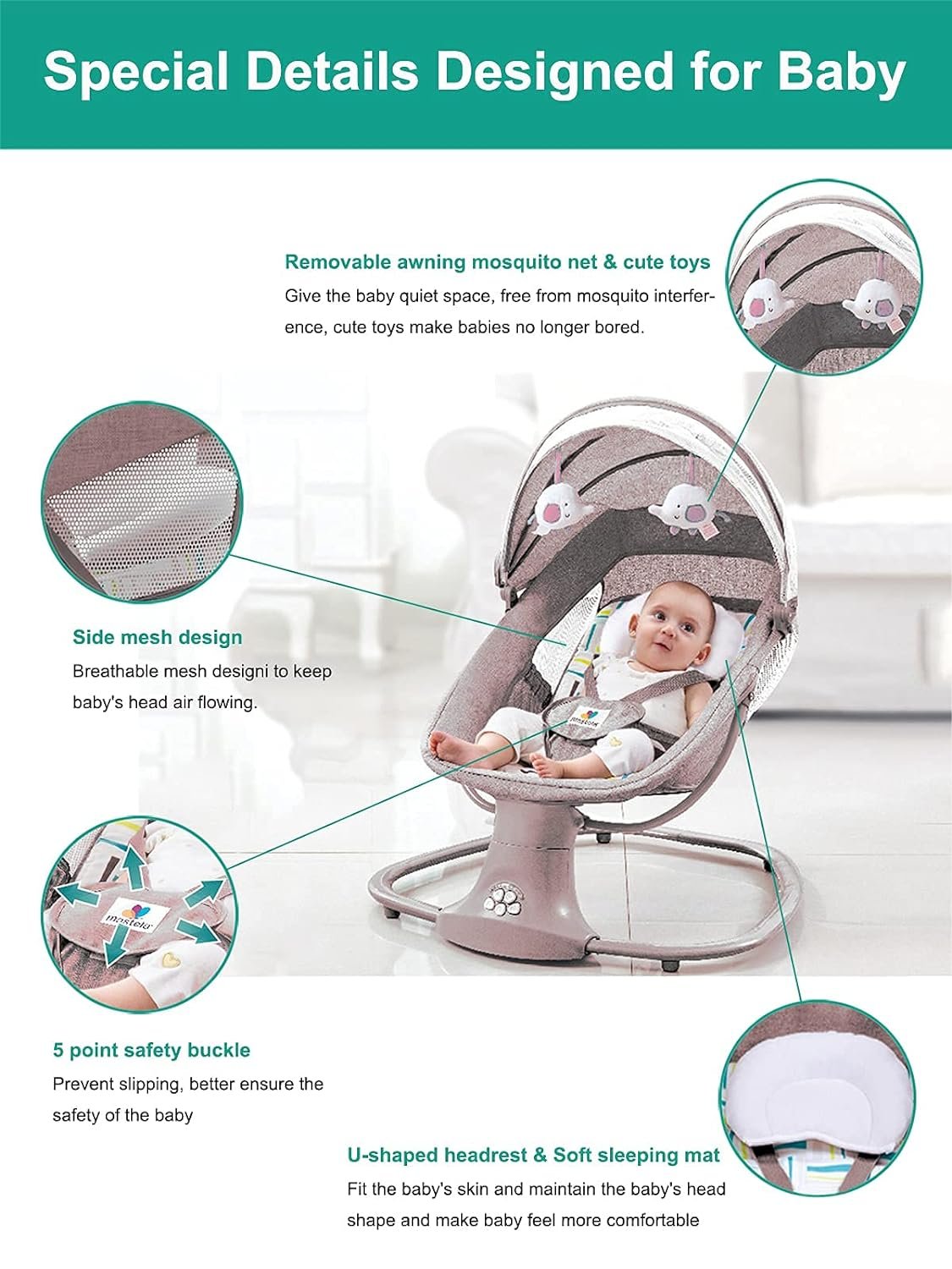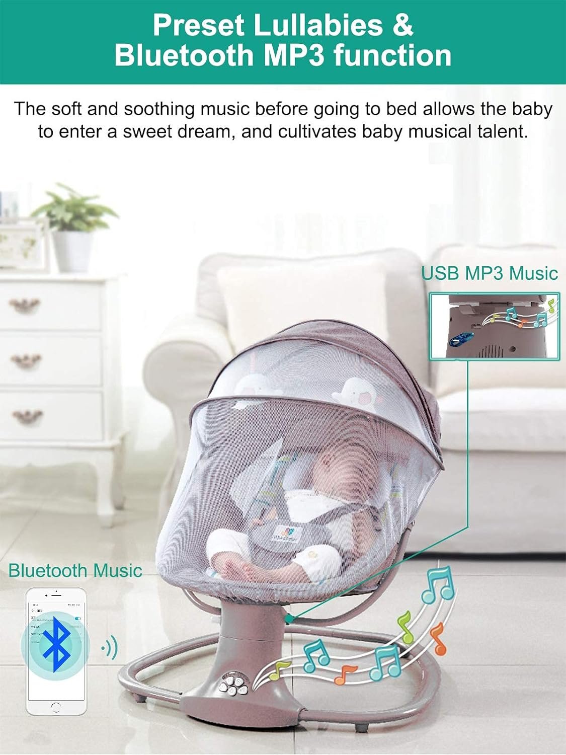【Preset Lullabies & Bluetooth MP3 Player】 Preset multiple soothing lullabies, gently soothing the baby before going to bed to let the baby have a sweet dream; this baby rocking chair also has Bluetooth and USB connection options, which can play soft baby music and cultivate baby’s musical talent.
