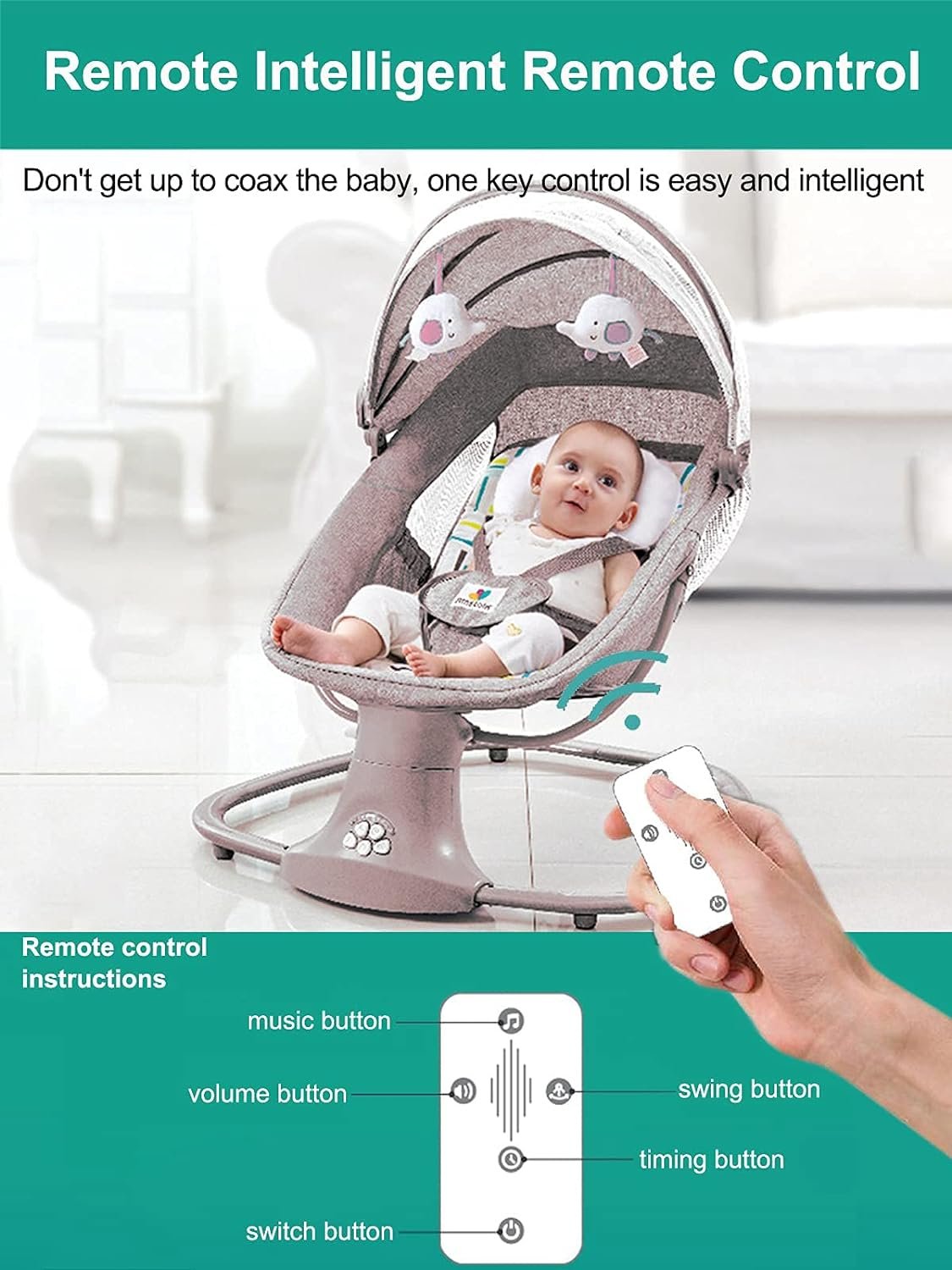 【Smart Remote Control】 With smart remote control, no need to get up to coax your baby, reducing the pressure of parents to coax the baby, and freeing parents’ minds and bodies.
