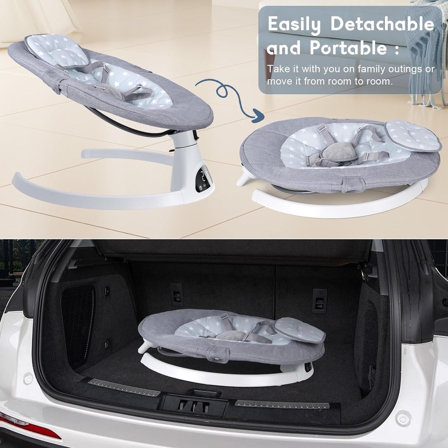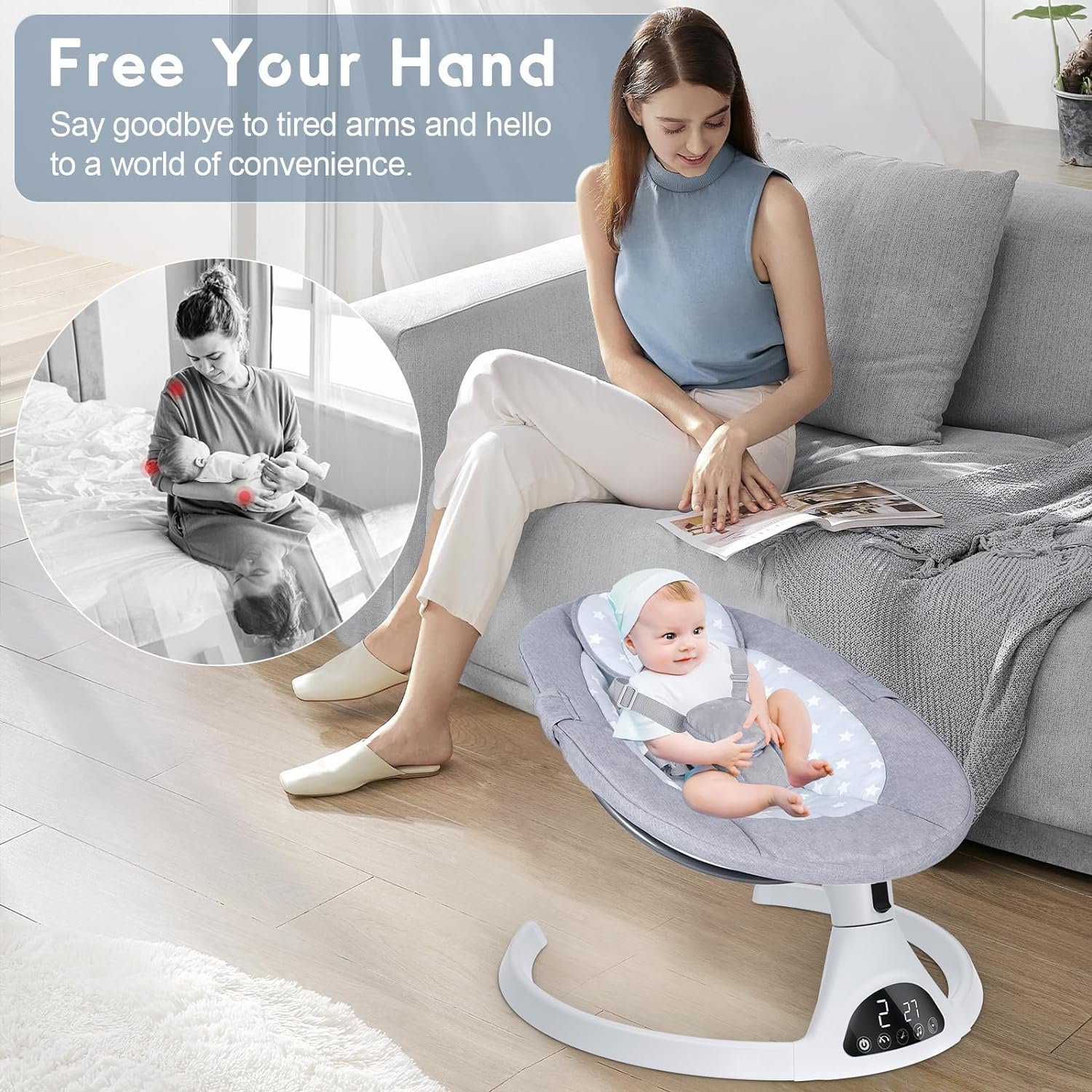 【Quiet and Smooth Operation】 The baby rocker for infants is designed to provide a peaceful and uninterrupted swinging motion. It operates smoothly without any jerks or glitches, creating a soothing experience for your little one. It mimics the comforting embrace of a mother’s arms, helping to calm and relax your baby.