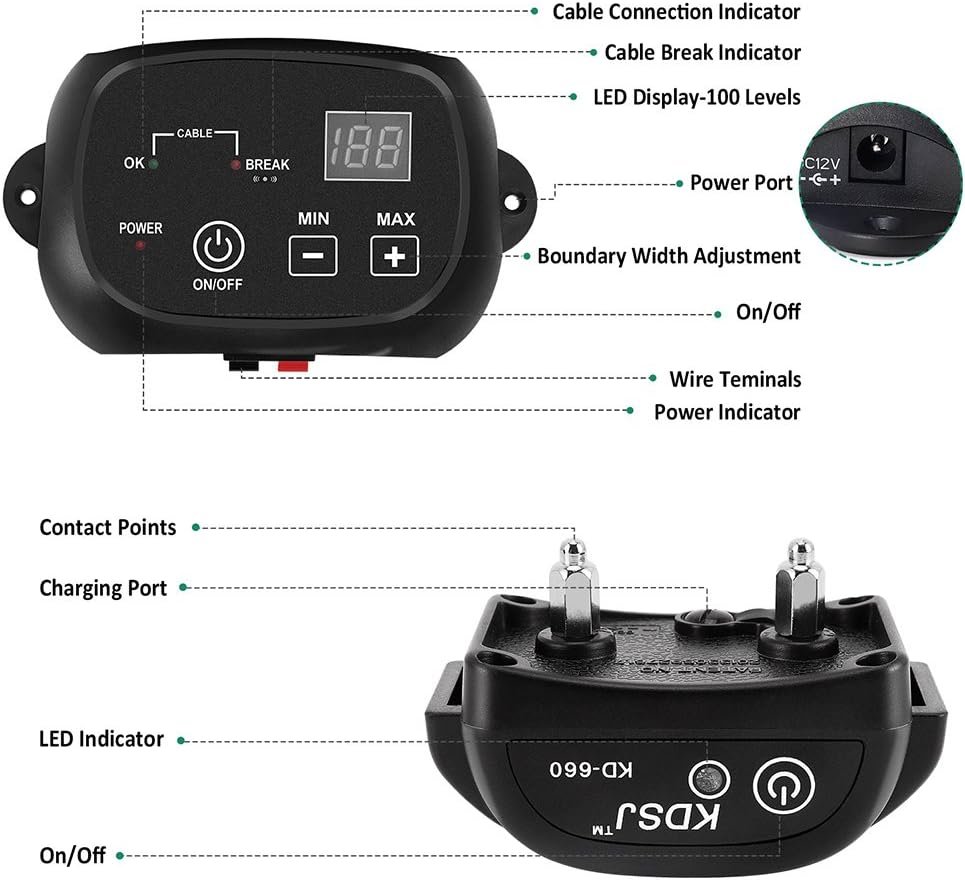The COVONO KD660B-1 In-Ground Dog Containment System is a simple, accurate and secure system that comes with 650Ft wire, 1 transmitter and receiver, designed for dog owners to keep the dog secure in an adjustable up to 3/4 acre play area.