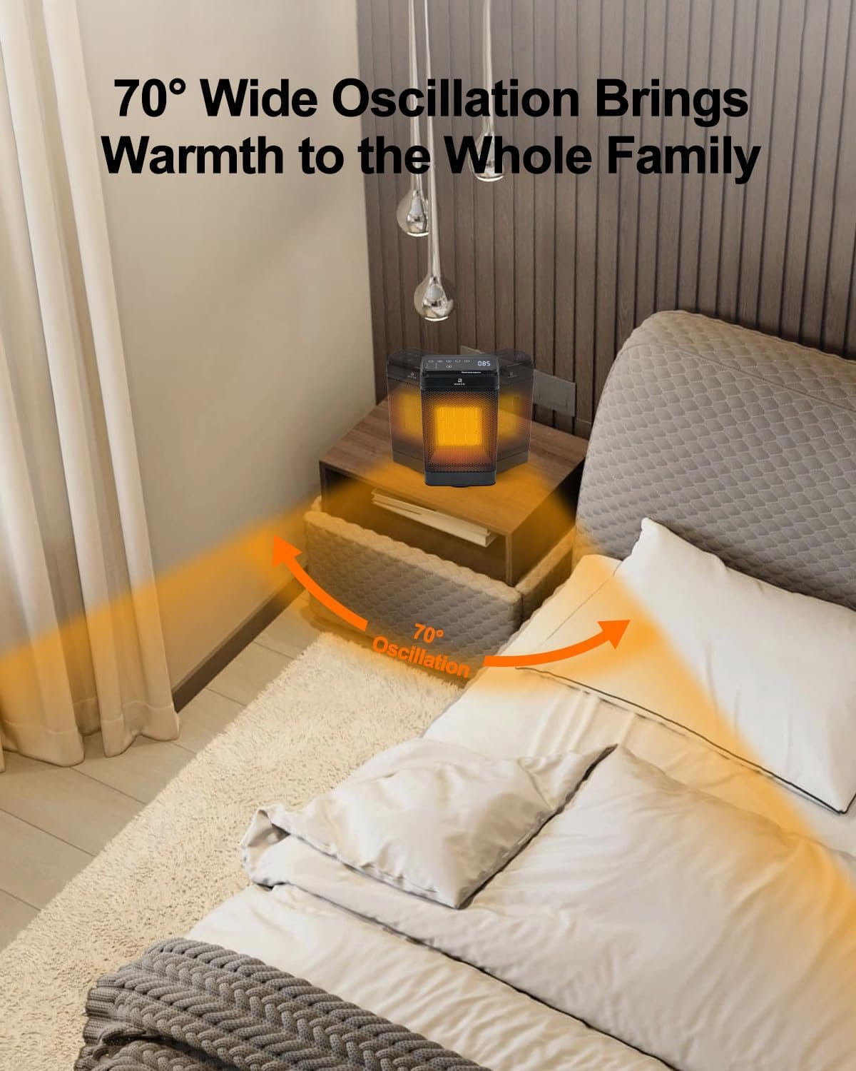 🔥 WIDE-ANGLE 70° OSCILLATION: Immerse yourself in warmth that blankets your space. Our heater’s expansive 70° oscillation ensures comprehensive coverage, delivering all-encompassing heat to your bedroom, garage, basement, office, desktop, and more. Enjoy warmth where you need it most.