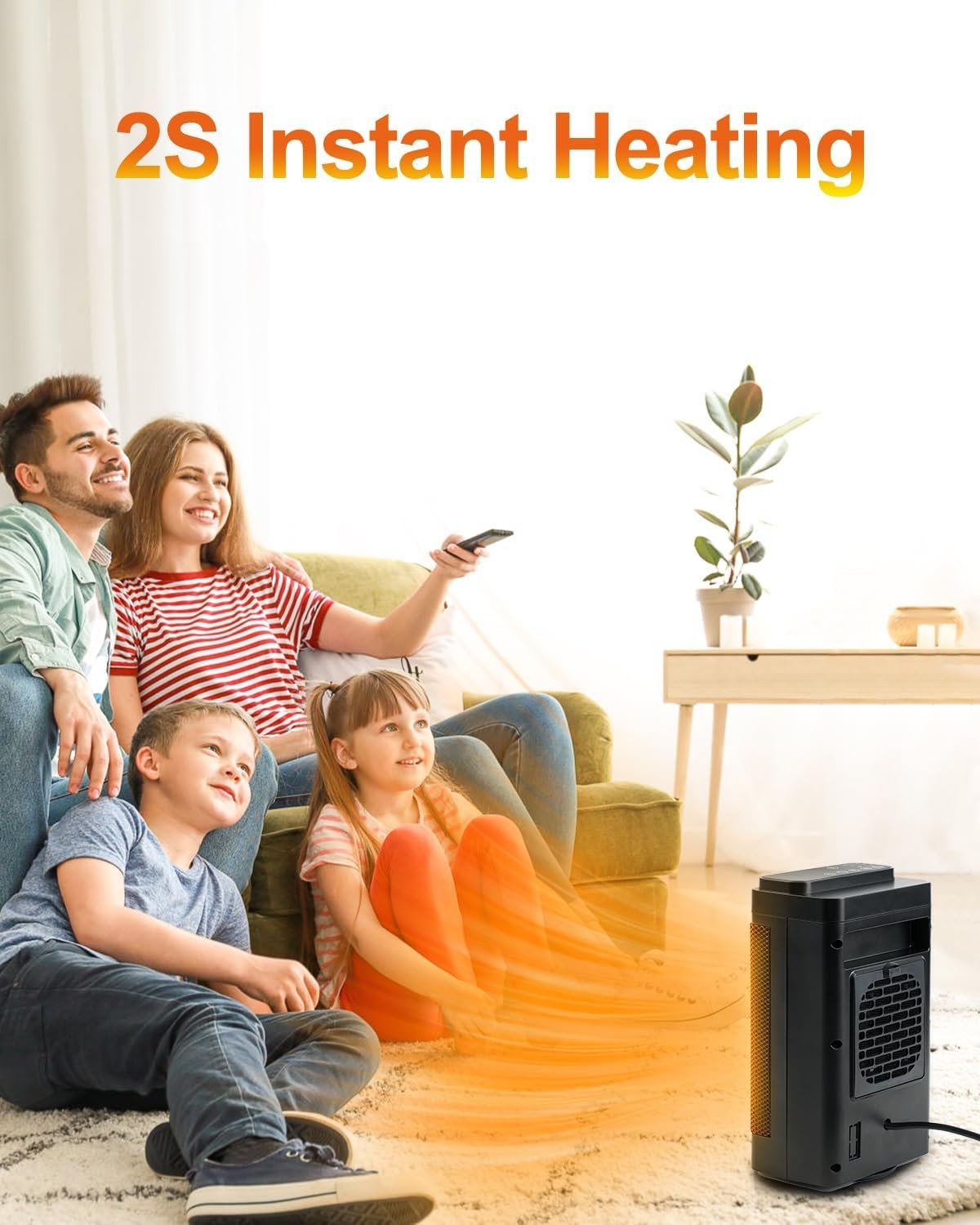 Electric Space Heater – 1500W with Remote, Portable PTC Ceramic Desk and Room Heater for Fast Safety Heat, 70° Oscillation, 12H Timer, 4 Modes, Adjustable Thermostat – Perfect for Indoor Use