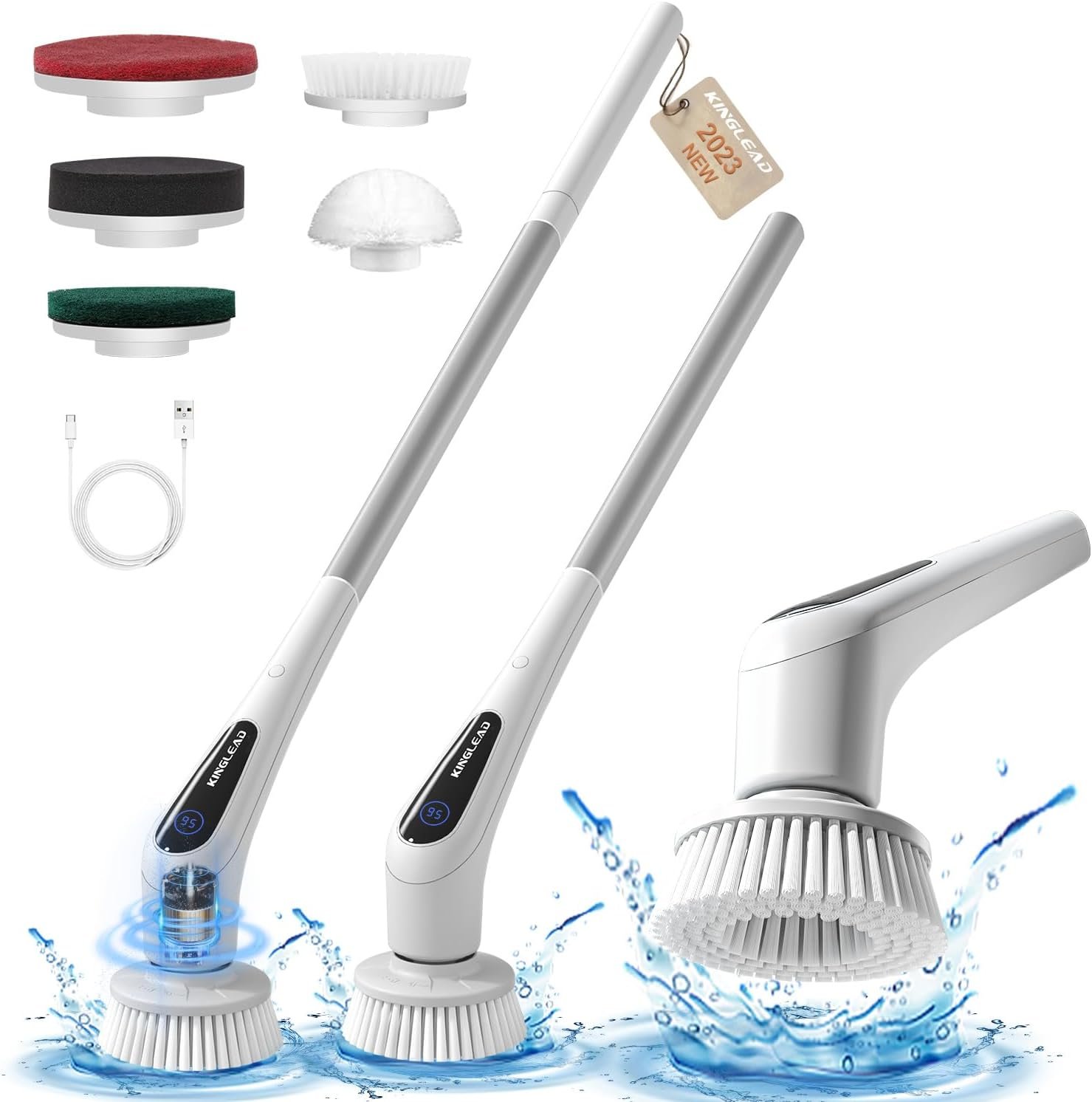 🎁【𝗜𝗱𝗲𝗮𝗹 𝗚𝗶𝗳𝘁 𝗖𝗵𝗼𝗶𝗰𝗲 & 𝗤𝘂𝗮𝗹𝗶𝘁𝘆 𝗔𝘀𝘀𝘂𝗿𝗮𝗻𝗰𝗲】: The powerful electric spin scrubber is a good helper for house cleaning and easier than traditional cleaning. Great gift for someone who has mobility issues or just doesn’t have time to spend cleaning by hand. As a sweet gift for birthday parties, Easter, Mother’s Day, etc. KINGLEAD bathroom scrubber electric is committed to product quality. Any problems, pls contact us and we will solve your problem within 24 hours.
