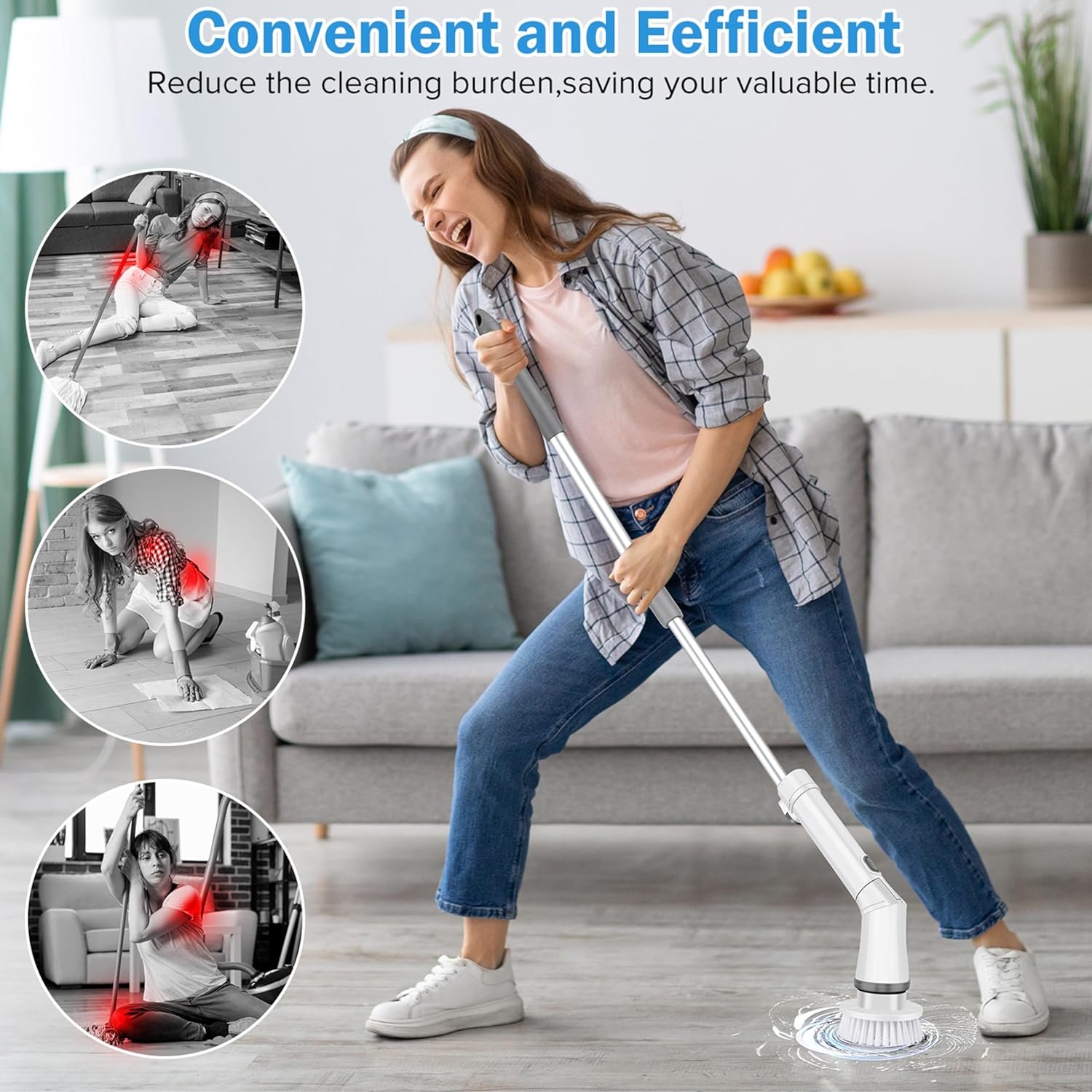 【Dual Speeds】 This upgraded electric spin scrubber with 2 adjustable speeds (350/400 RPM) and 7 replaceable brush heads ensures thorough cleaning of different surfaces, including floors, walls, bathtubs, sinks, and more. With the adjustable and flexible head angel, the electric cleaning brush meets different cleaning needs and ensures that it plays an important role in the cleaning process.