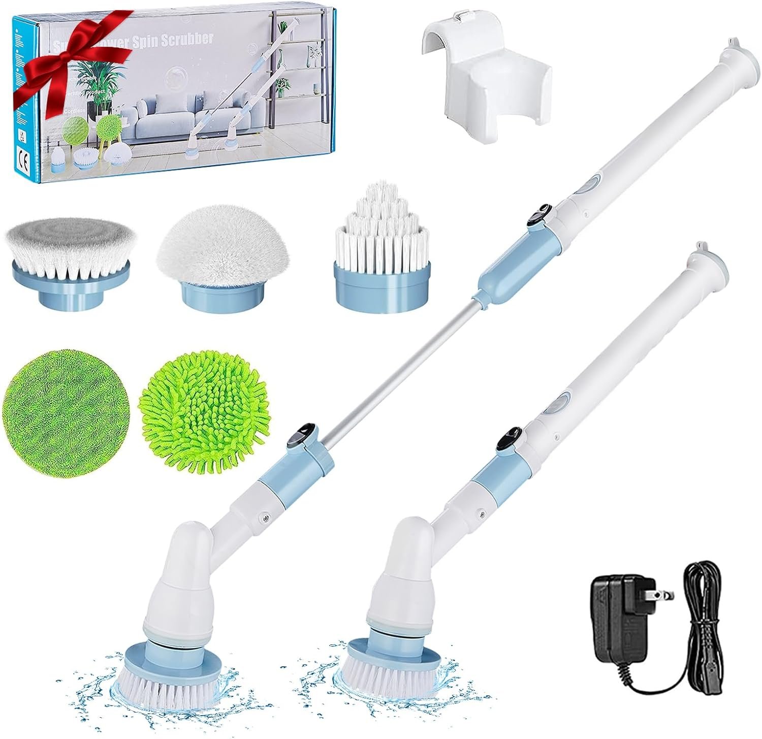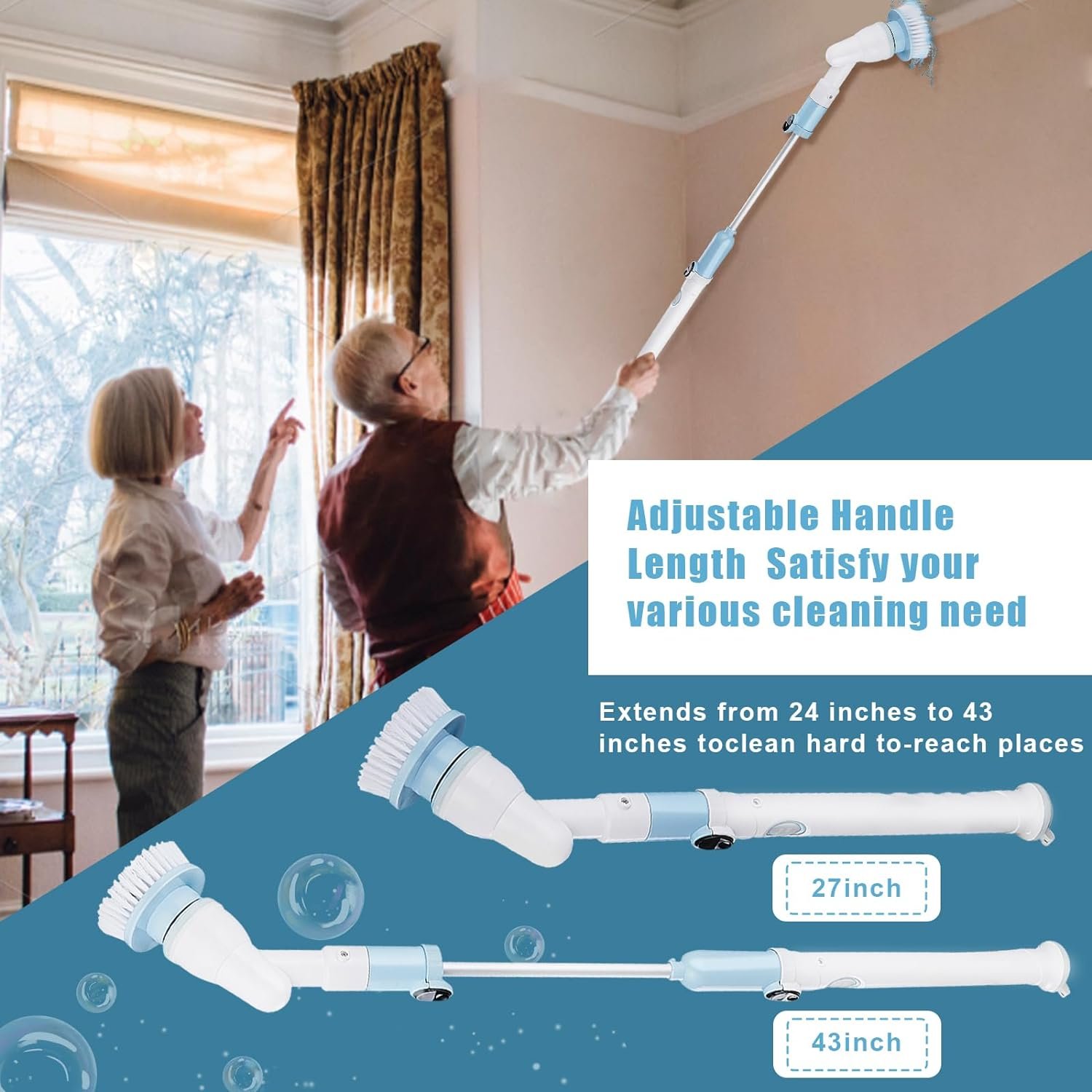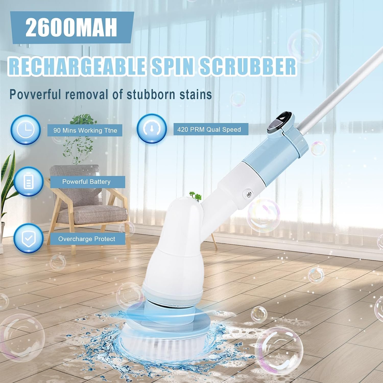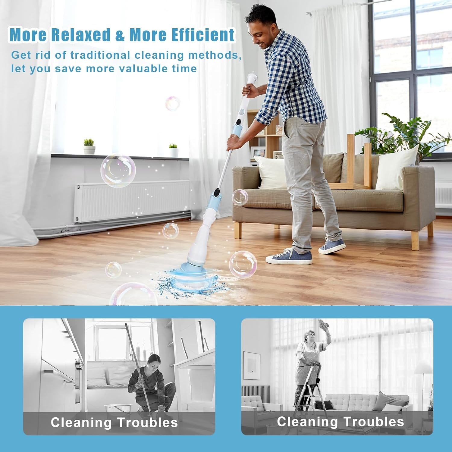 【Efficiency】You can easily clean your bathroom,bath tub,stone tile floor,grout,grooves,Toilet,in one fell swoop with Electric Spin Scrubber.The internal motor drives the rotating brush head to rotate at a high speed up to 320RPM, and when used with a cleaning