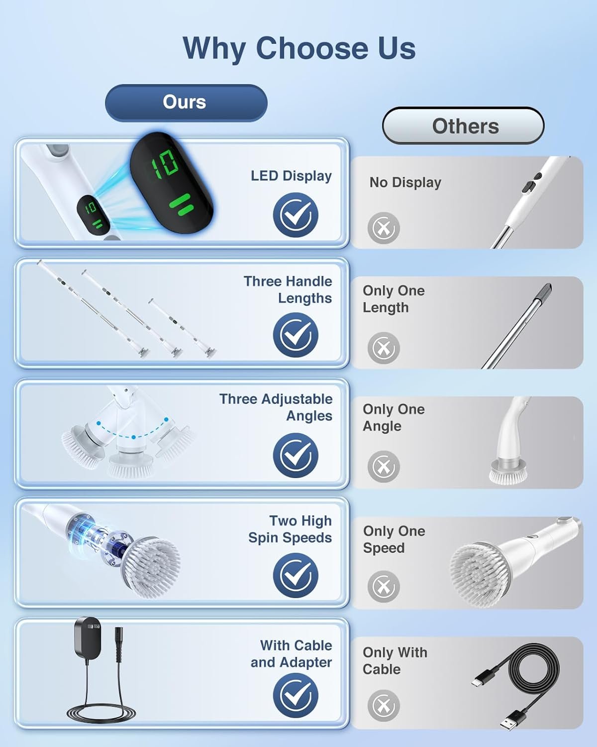 🎁[𝐏𝐚𝐜𝐤𝐚𝐠𝐞 & 𝐒𝐞𝐫𝐯𝐢𝐜𝐞] Comes with Charging Adapter*1, Main Handle*1, Extendable Handle*1, Large Flat Brush*1, Small Flat Brush*1, Dome Brush*1, Corner Brush*1, Hook*1, User Manual*1. Great as a thoughtful and practical gift for your friends or family. Also, if you have any questions, please feel free to contact our customer service, we will solve your problem as best as we can.