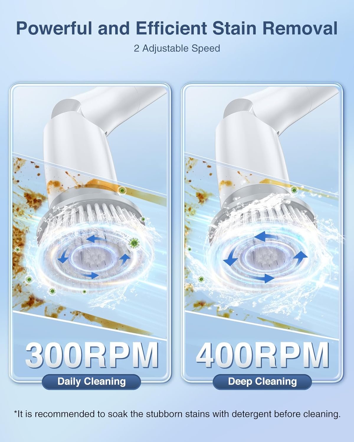 👍[𝐃𝐮𝐚𝐥 𝐒𝐩𝐞𝐞𝐝𝐬, 𝐏𝐨𝐰𝐞𝐫𝐟𝐮𝐥 & 𝐄𝐟𝐟𝐢𝐜𝐢𝐞𝐧𝐭 𝐒𝐩𝐢𝐧 𝐒𝐜𝐫𝐮𝐛𝐛𝐞𝐫] Unlike other power scrubbers that only have one speed, our electric shower scrubber has 2 adjustable spin speeds: 300RPM mode for daily cleaning, 400PRM mode for deep cleaning, superpower perfectly meet all your cleaning needs.