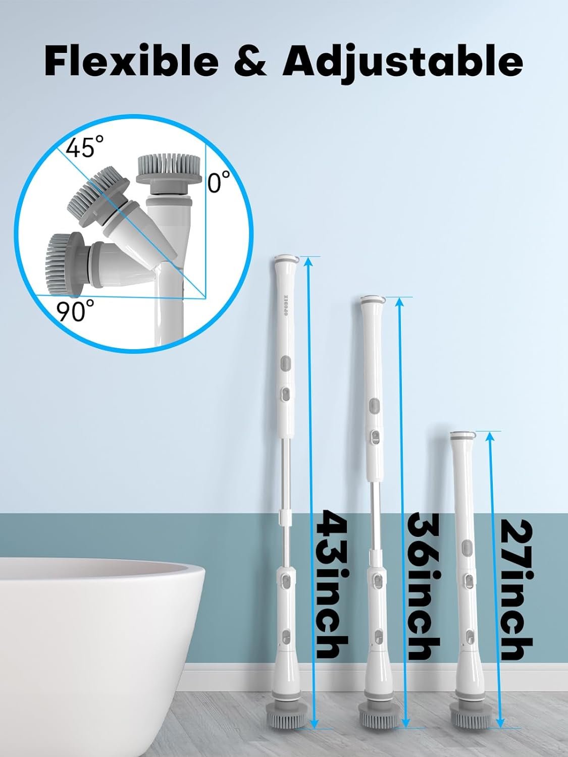 🔋 No Wires, No Hassle: The OPODEE Electric Spin Scrubber comes with an adapter, which allows you to thoroughly clean your entire bathroom 2-3 times on a single charge, without any inconvenient wires getting in your way. With this scrubber, you can effectively clean every nook and cranny of your bathroom in no time.