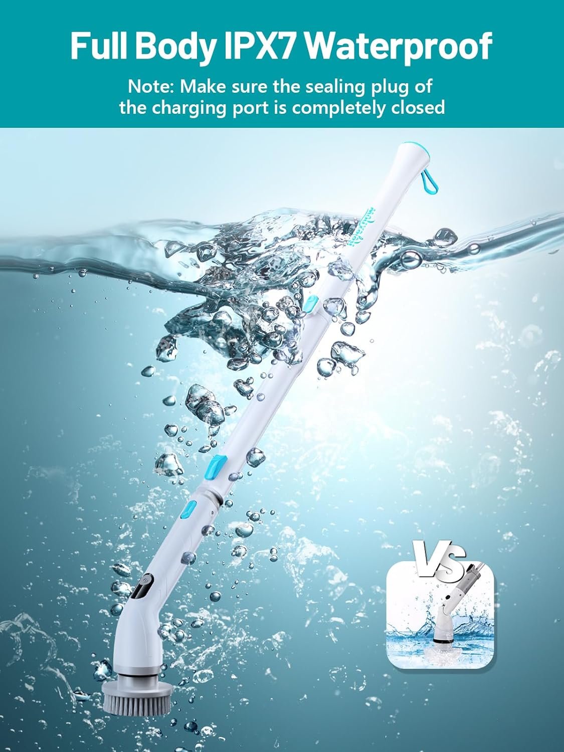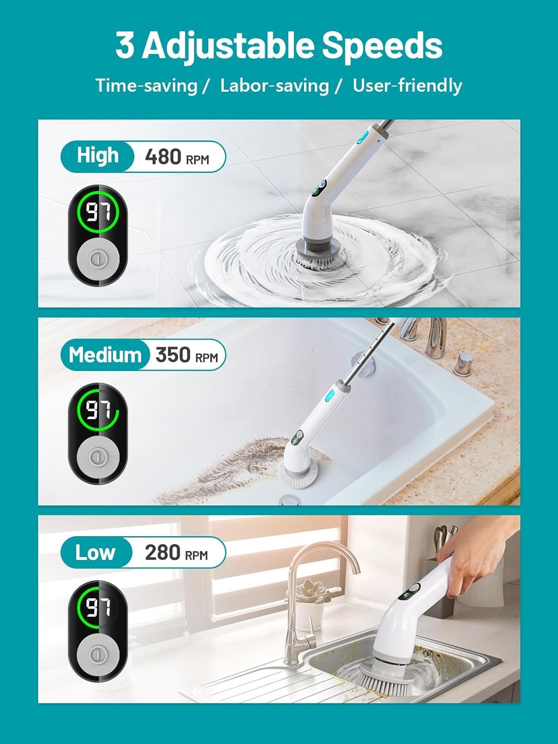 Upgraded 3 Speeds Up to 420PRM – Equipped with a powerful motor and 3 speeds cleaning modes, the bathtub scrubber can deliver a thorough clean. With a maximum speed of up to 420 RPM, you can clean soap scum, grout, or stubborn stains in minutes. The additional two speeds, 280 and 350 RPM, are perfect for everyday cleaning tasks. Enjoy the flexibility of switching between speeds to meet your various cleaning needs.