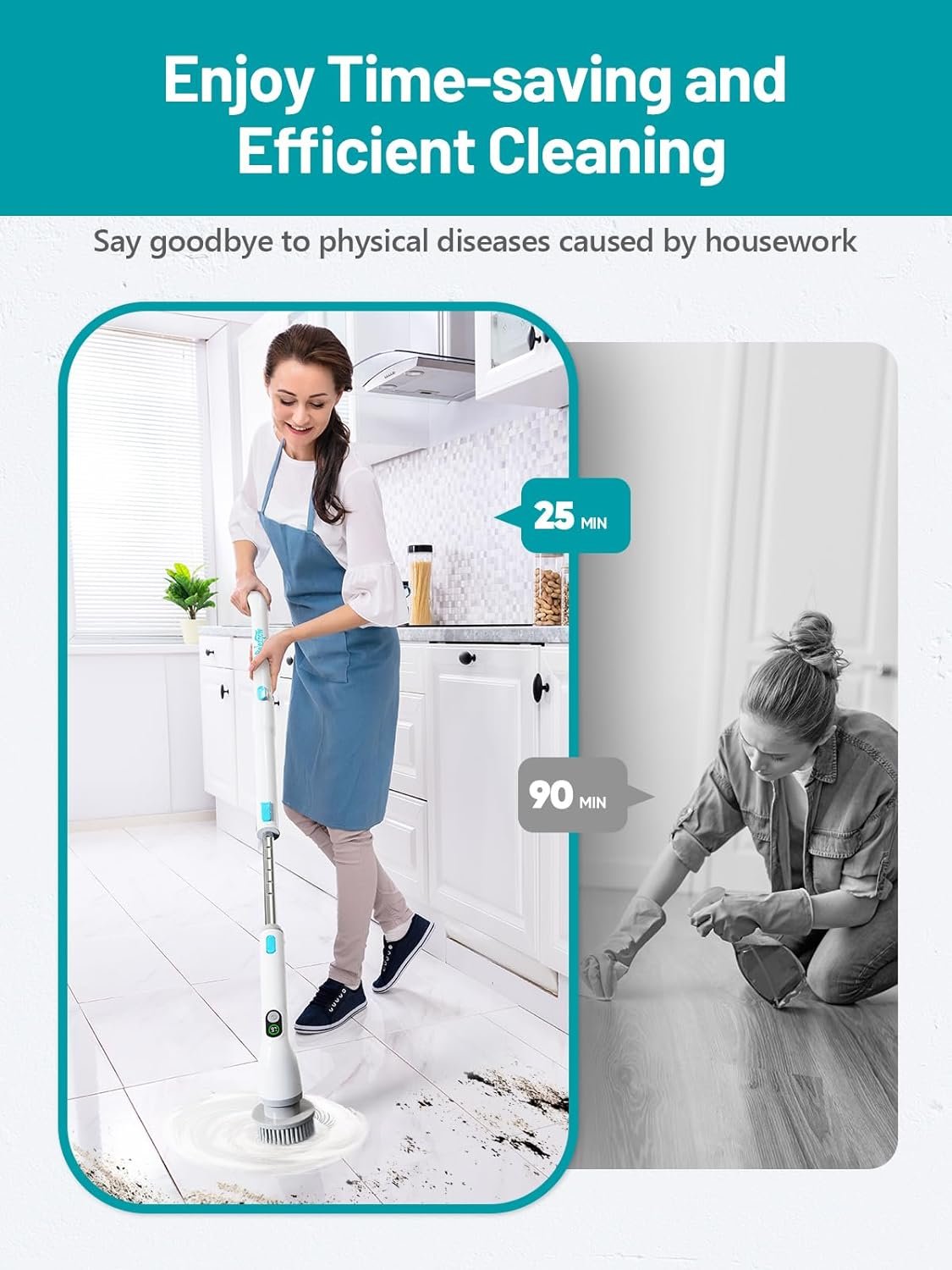 Your Powerful Cleaning Assistant – Say goodbye to the traditional cleaning tools, the RELEXNOW electric spin scrubber offers you a easier and more comfortable way to clean. No more kneeling, no more bending over, save time and energy, a good tool to help you take care of your waist and joints. Our electric cleaning brush is a great choice as a gift for your family and friends.