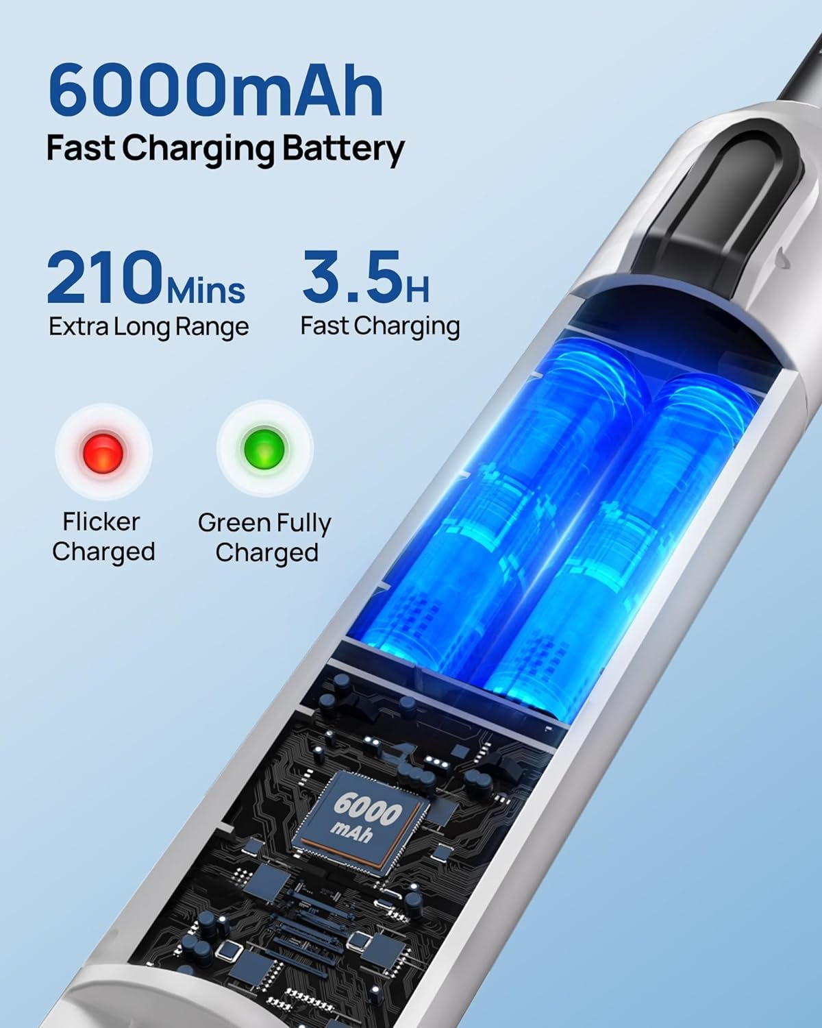 【Cordless&Fast charging】Adapted upgraded 3000mAh*2 battery, our electric spin scrubber can be used for about 210 minutes after only 3.5 hours fast charging, far enough to clean your entire house. Cordless design makes it convenient to use it wherever you need it!