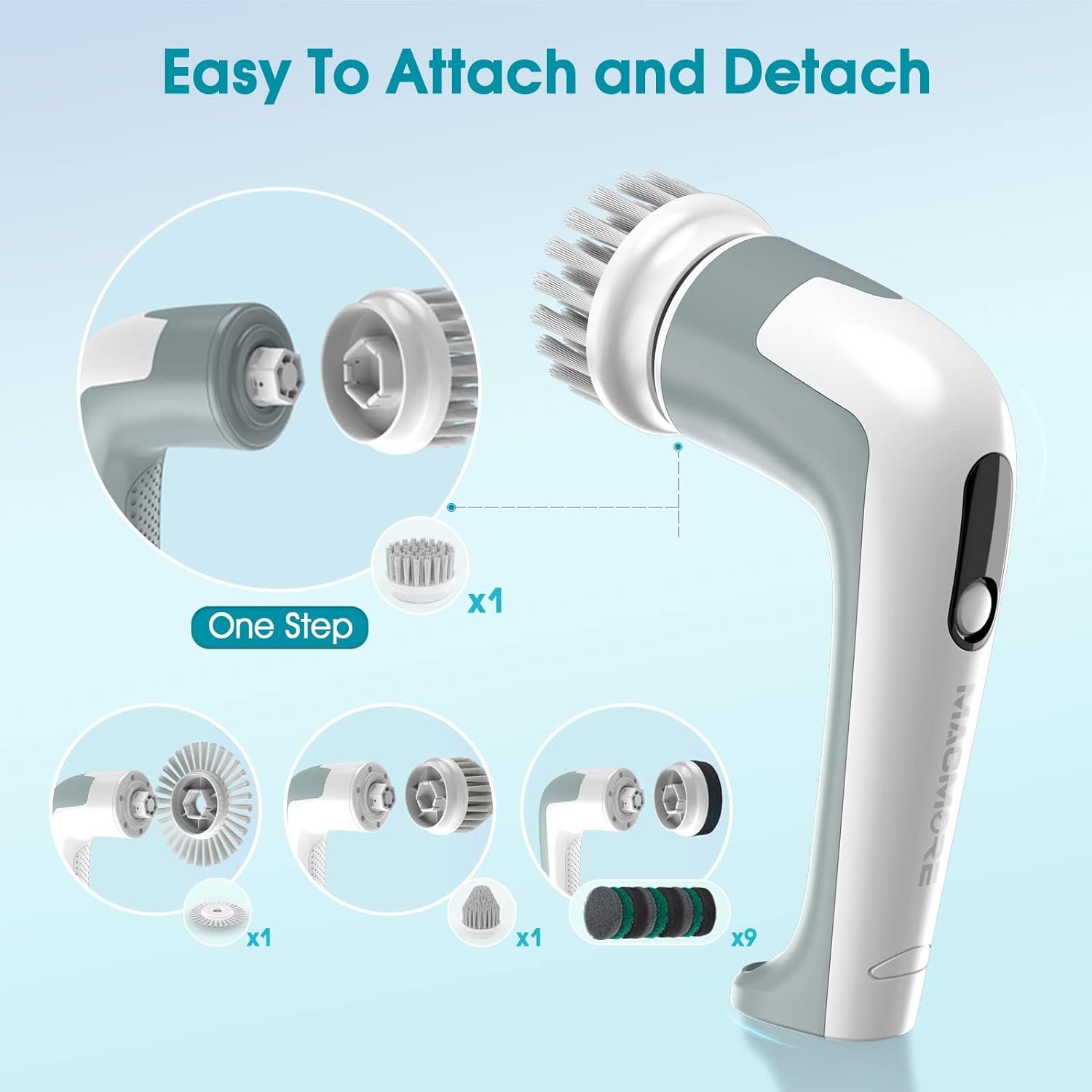 Time-Saving Cleaning Tool – Why wait for an occasion to make life easier? After years of cleaning your house manually, it’s time to upgrade to something more powerful. MACMORE electric spin scrubber can easily remove tough stains and grime, leaving it spotless with minimal effort on your part. This shower scrubber has 4 replaceable cleaning heads and 9 scouring pads, making it incredibly versatile for different cleaning tasks, like your showers,tile,sinks,stove,glass,car wheel and so much more