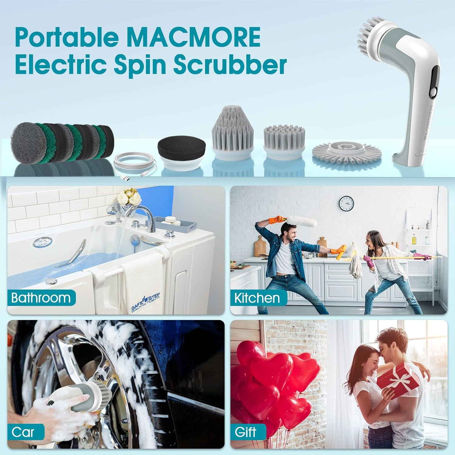 Ideal Gift & 24/7 Customer Service – At Macmore, all our electric scrubbers for bathroom are FCC-certified, we value our customers and always try our utmost to provide you with the best kind of service, health and safety assurance. Our electric spin scrubbers are perfect for your bathroom, kitchen, tile, stove, glass, grout and car ect. A great gift for family and friends. Note: To remove very stubborn stains, please use it with detergent